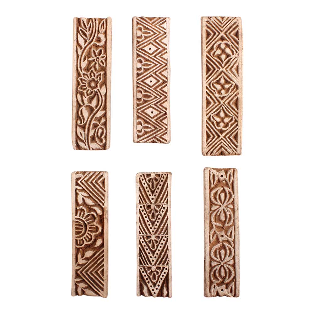Set of 6 Piece New Mix Wooden Printing Block. Ideal for use on Fabric, Paper, Canvas, etc. These Blocks can be use to Print with Oil Colors, Fabric Colors, Water Colors, Acrylic Colors and Vegetable Colors.