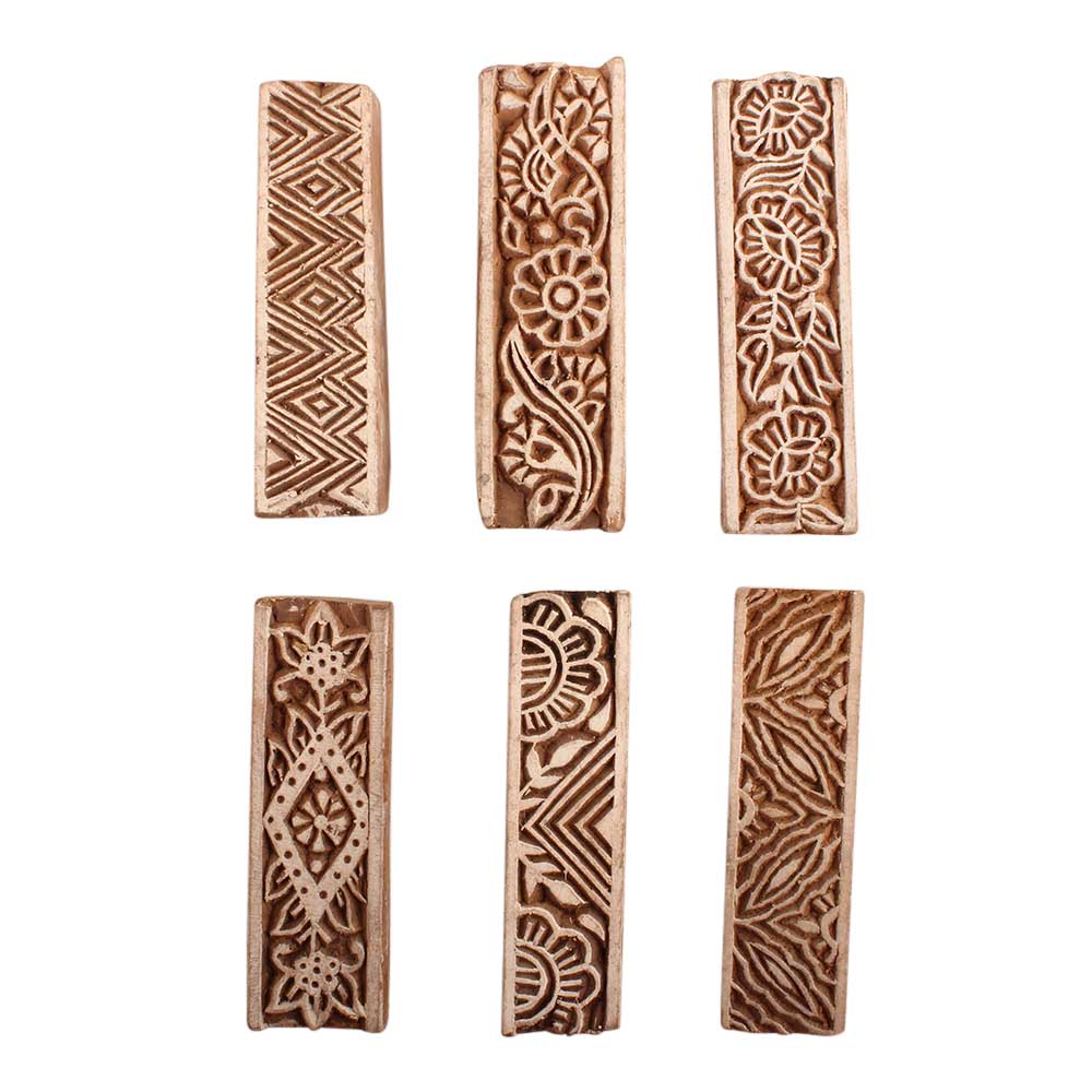 Set of 6 Piece New Mix Wooden Printing Block. Ideal for use on Fabric, Paper, Canvas, etc. These Blocks can be use to Print with Oil Colors, Fabric Colors, Water Colors, Acrylic Colors and Vegetable Colors.