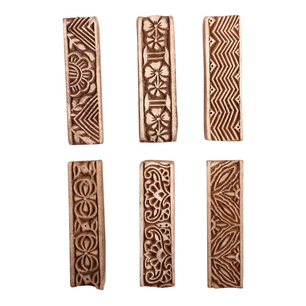 Set of 6 Piece New Mix Wooden Printing Block. Ideal for use on Fabric, Paper, Canvas, etc. These Blocks can be use to Print with Oil Colors, Fabric Colors, Water Colors, Acrylic Colors and Vegetable Colors.