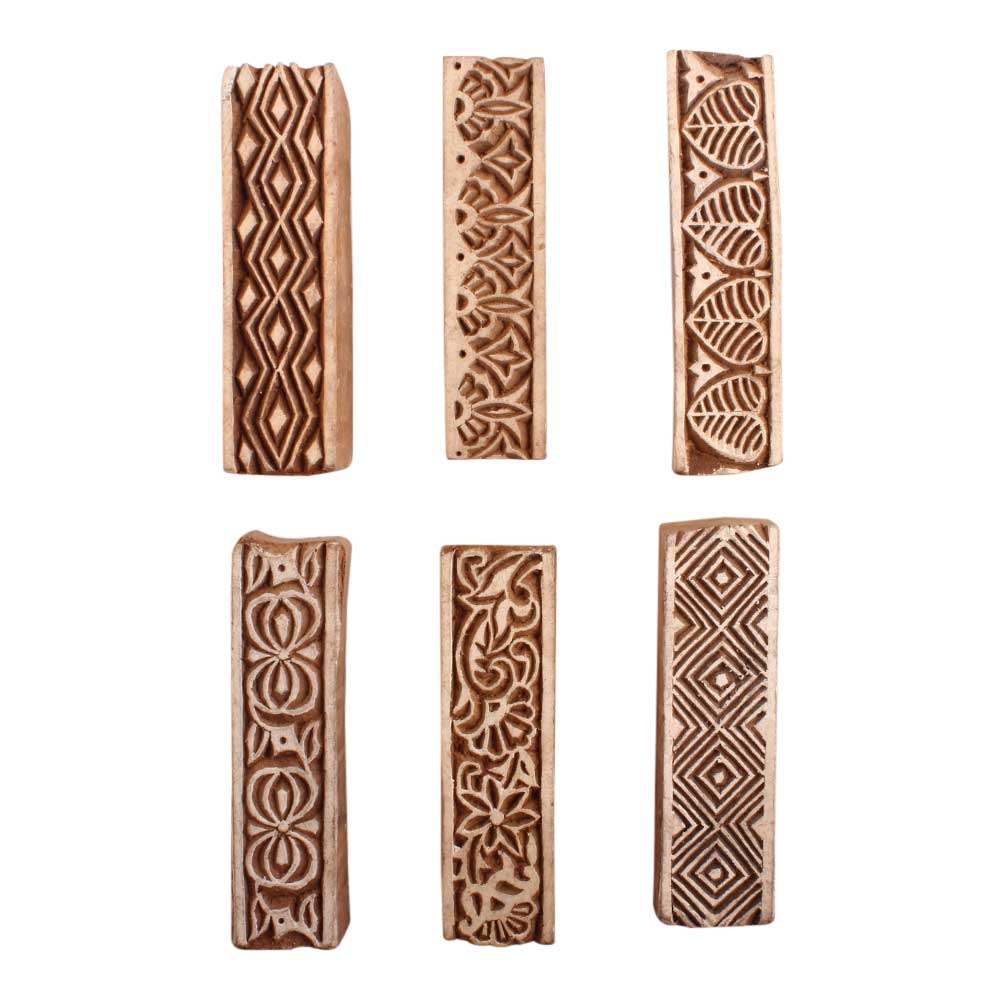 Set of 6 Piece New Mix Wooden Printing Block. Ideal for use on Fabric, Paper, Canvas, etc. These Blocks can be use to Print with Oil Colors, Fabric Colors, Water Colors, Acrylic Colors and Vegetable Colors.