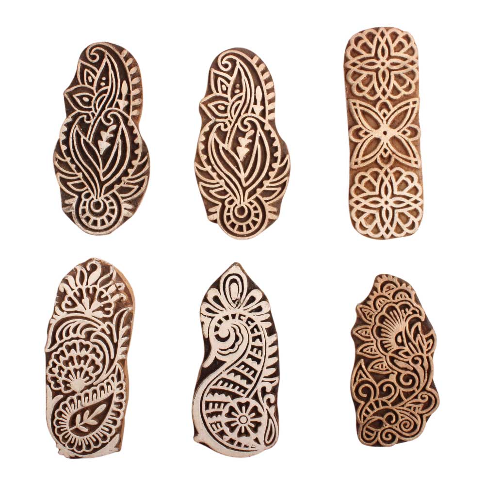 Set of 6 Piece New Mix Wooden Printing Block. Ideal for use on Fabric, Paper, Canvas, etc. These Blocks can be use to Print with Oil Colors, Fabric Colors, Water Colors, Acrylic Colors and Vegetable Colors.
