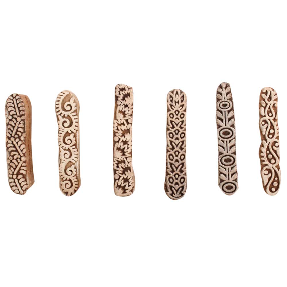 Set of 6 Piece New Mix Wooden Printing Block. Ideal for use on Fabric, Paper, Canvas, etc. These Blocks can be use to Print with Oil Colors, Fabric Colors, Water Colors, Acrylic Colors and Vegetable Colors.