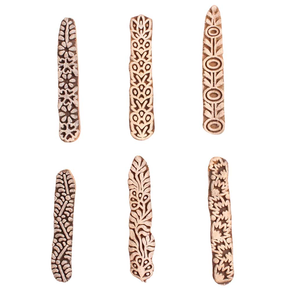 Set of 6 Piece New Mix Wooden Printing Block. Ideal for use on Fabric, Paper, Canvas, etc. These Blocks can be use to Print with Oil Colors, Fabric Colors, Water Colors, Acrylic Colors and Vegetable Colors.