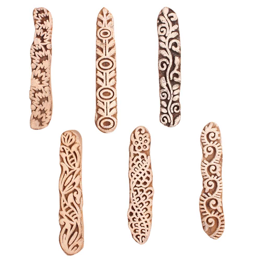 Set of 6 Piece New Mix Wooden Printing Block. Ideal for use on Fabric, Paper, Canvas, etc. These Blocks can be use to Print with Oil Colors, Fabric Colors, Water Colors, Acrylic Colors and Vegetable Colors.