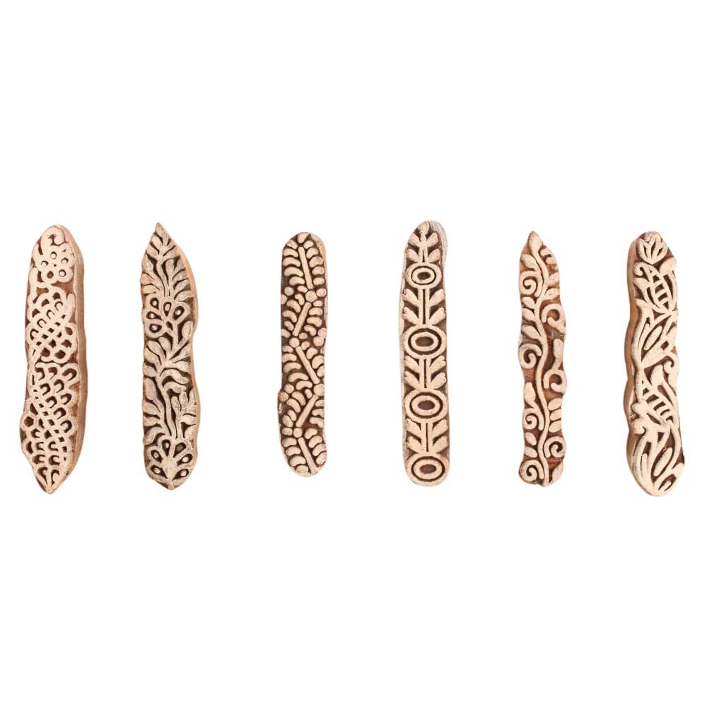 Set of 6 Piece New Mix Wooden Printing Block. Ideal for use on Fabric, Paper, Canvas, etc. These Blocks can be use to Print with Oil Colors, Fabric Colors, Water Colors, Acrylic Colors and Vegetable Colors.
