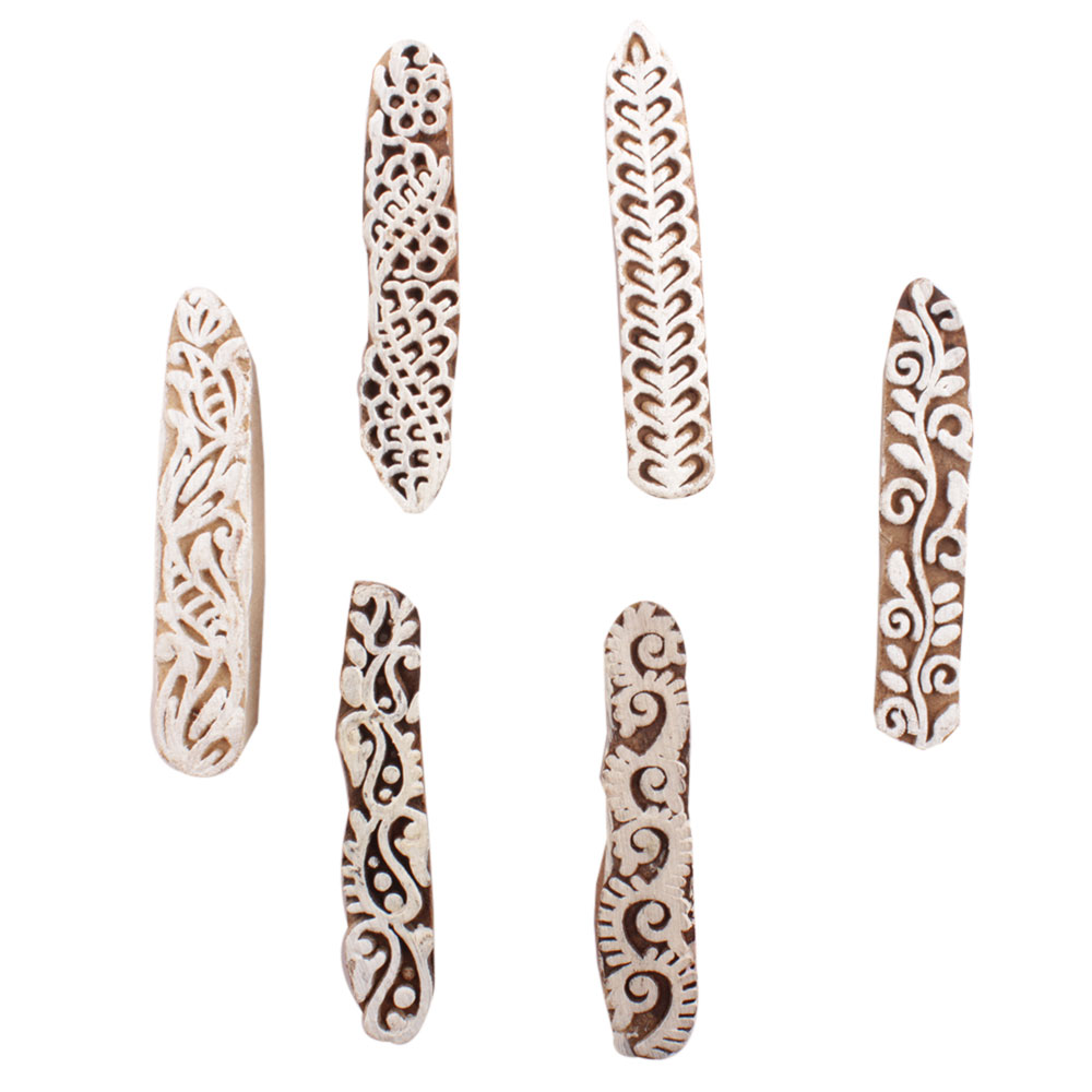 Set of 6 Piece New Mix Wooden Printing Block. Ideal for use on Fabric, Paper, Canvas, etc. These Blocks can be use to Print with Oil Colors, Fabric Colors, Water Colors, Acrylic Colors and Vegetable Colors.
