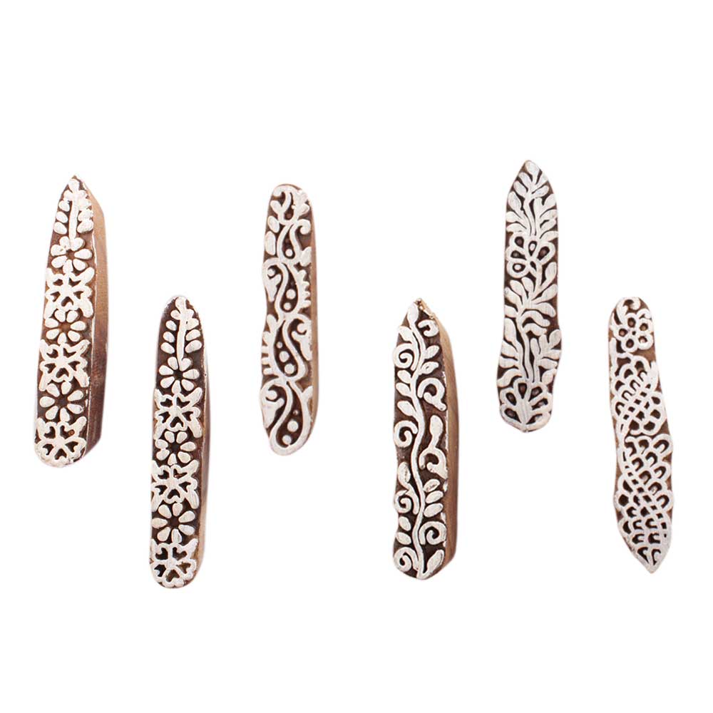 Set of 6 Piece New Mix Wooden Printing Block. Ideal for use on Fabric, Paper, Canvas, etc. These Blocks can be use to Print with Oil Colors, Fabric Colors, Water Colors, Acrylic Colors and Vegetable Colors.