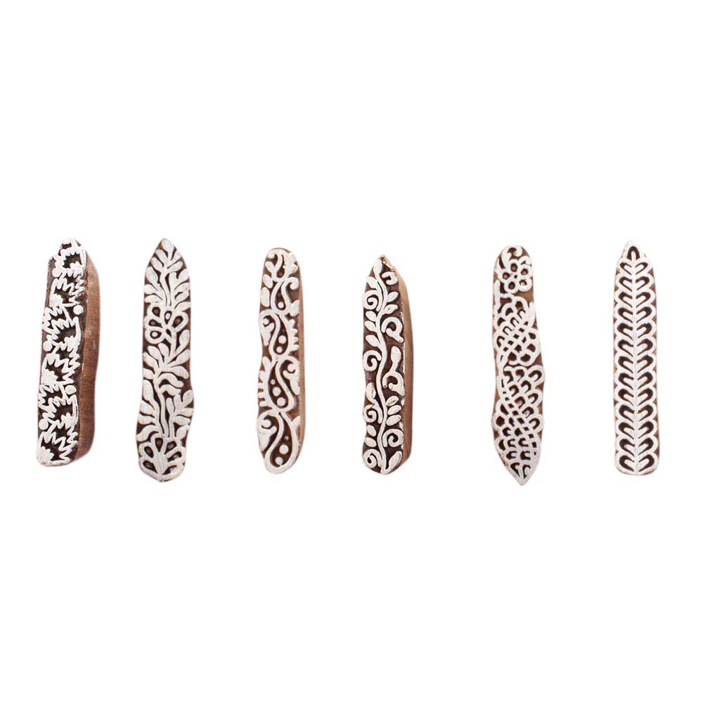 Set of 6 Piece New Mix Wooden Printing Block. Ideal for use on Fabric, Paper, Canvas, etc. These Blocks can be use to Print with Oil Colors, Fabric Colors, Water Colors, Acrylic Colors and Vegetable Colors.