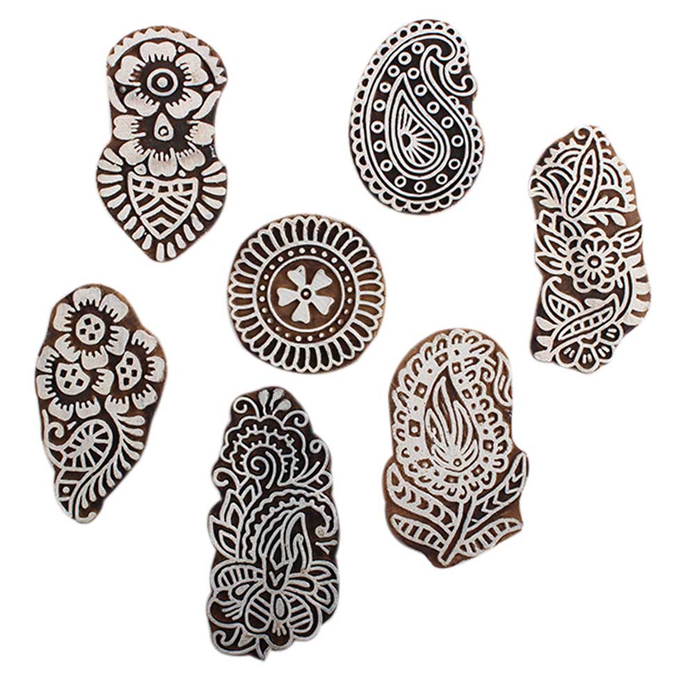 Set of 7 Piece New Mix Wooden Printing Block. Ideal for Using on Fabric, Paper, Canvas, etc. These Blocks can be use to Print with Oil Colors, Fabric Colors, Water Colors, Acrylic Colors and Vegetable Colors.