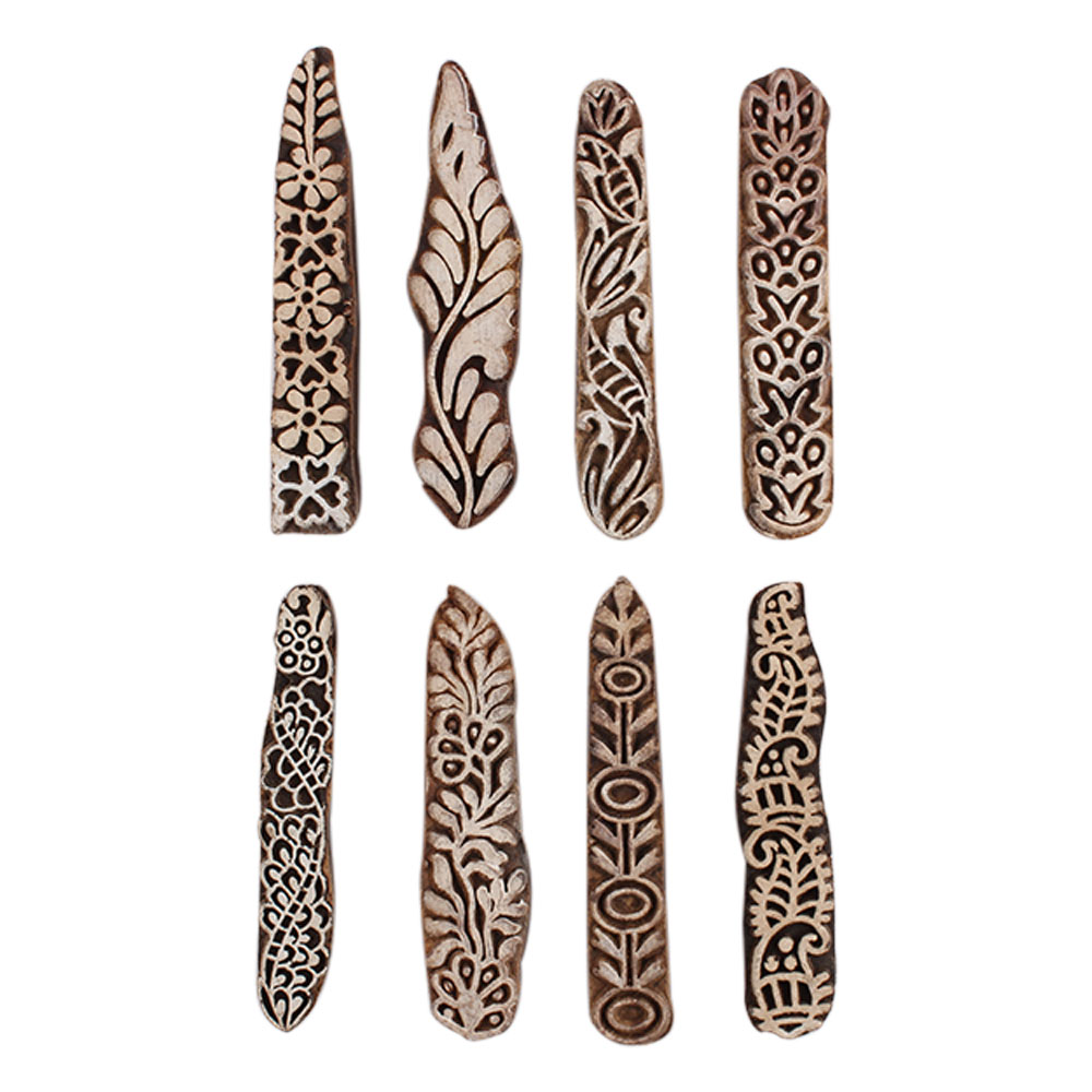 Set of 8 Piece New Mix Wooden Printing Block. Ideal for Using on Fabric, Paper, Canvas, etc. These Blocks can be use to Print with Oil Colors, Fabric Colors, Water Colors, Acrylic Colors and Vegetable Colors.