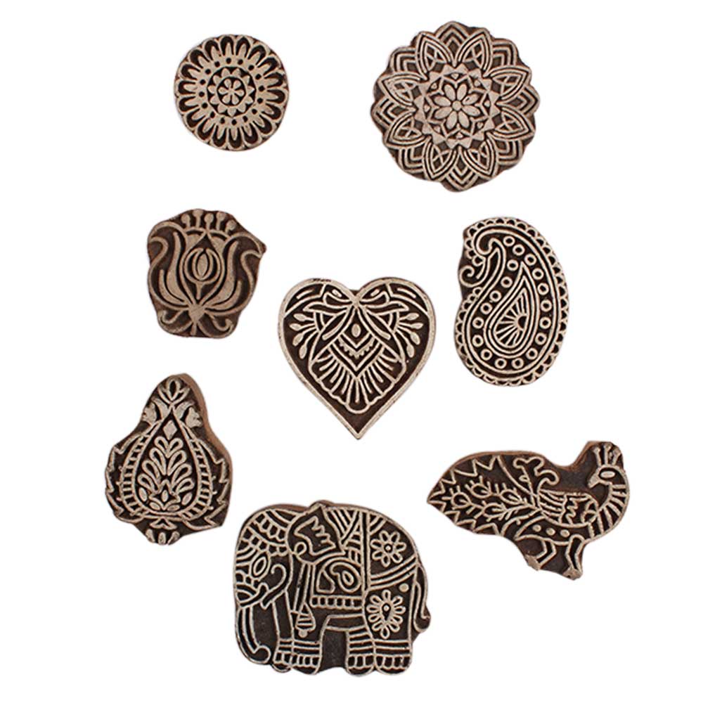 Set of 8 Piece New Mix Wooden Printing Block. Ideal for Using on Fabric, Paper, Canvas, etc. These Blocks can be use to Print with Oil Colors, Fabric Colors, Water Colors, Acrylic Colors and Vegetable Colors.