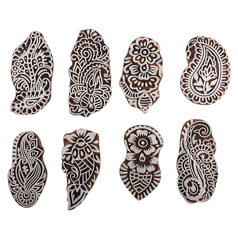 Set of 8 Piece New Mix Wooden Printing Block. Ideal for Using on Fabric, Paper, Canvas, etc. These Blocks can be use to Print with Oil Colors, Fabric Colors, Water Colors, Acrylic Colors and Vegetable Colors.