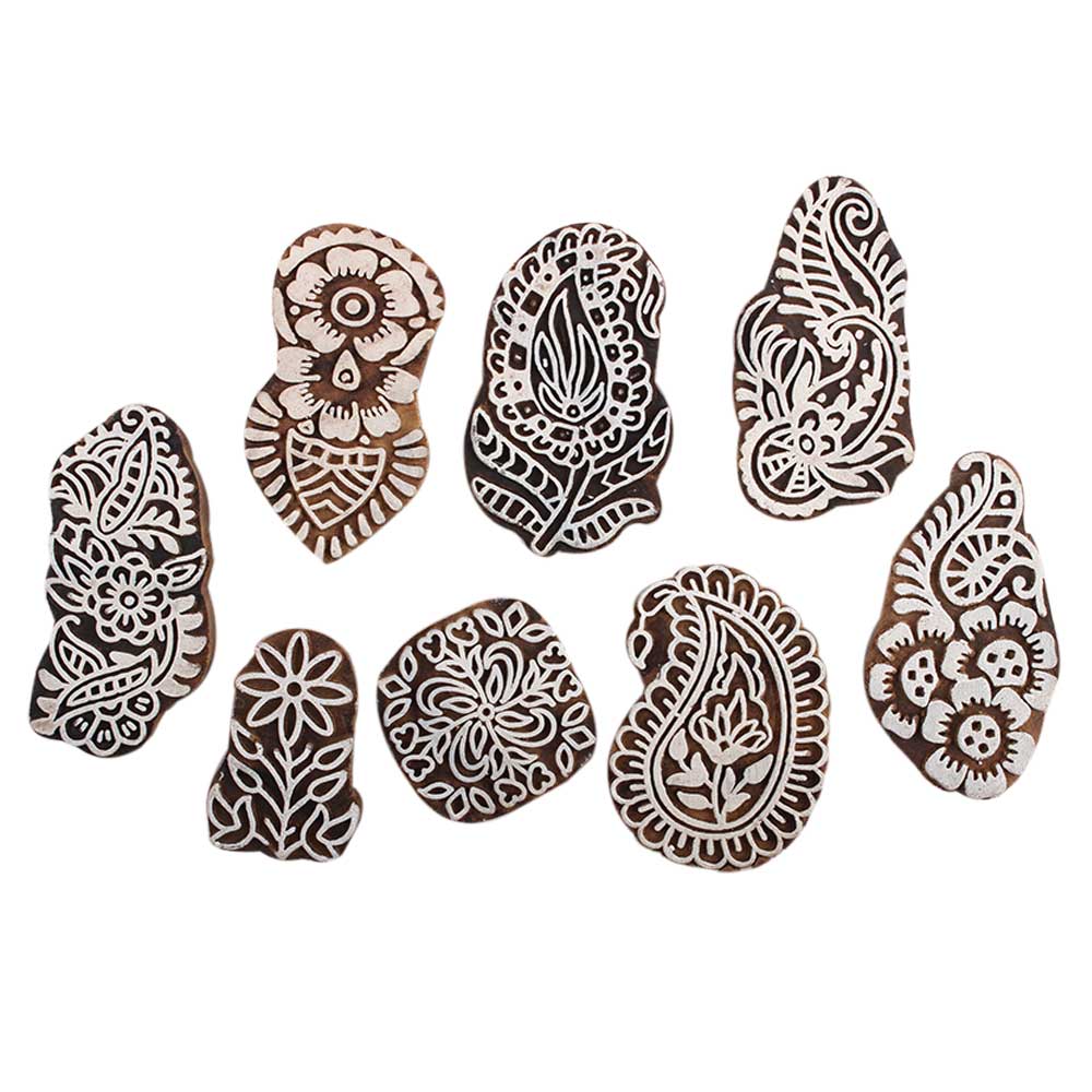 Set of 8 Piece New Mix Wooden Printing Block. Ideal for Using on Fabric, Paper, Canvas, etc. These Blocks can be use to Print with Oil Colors, Fabric Colors, Water Colors, Acrylic Colors and Vegetable Colors.
