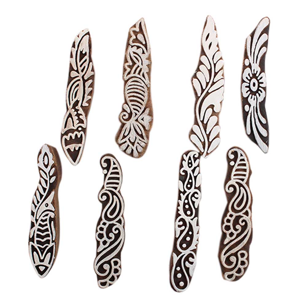 Set of 8 Piece New Mix Wooden Printing Block. Ideal for Using on Fabric, Paper, Canvas, etc. These Blocks can be use to Print with Oil Colors, Fabric Colors, Water Colors, Acrylic Colors and Vegetable Colors.