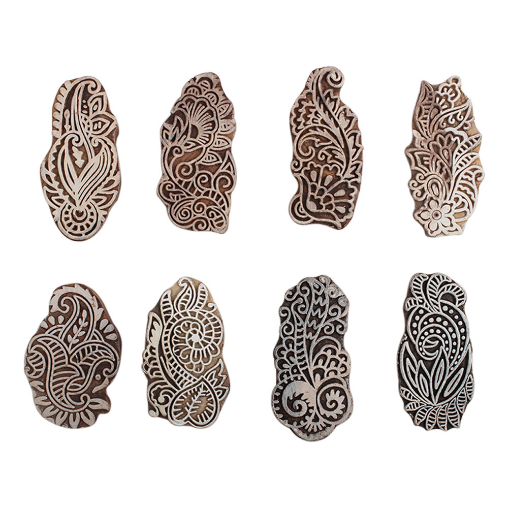 Set of 8 Piece New Mix Wooden Printing Block. Ideal for Using on Fabric, Paper, Canvas, etc. These Blocks can be use to Print with Oil Colors, Fabric Colors, Water Colors, Acrylic Colors and Vegetable Colors.