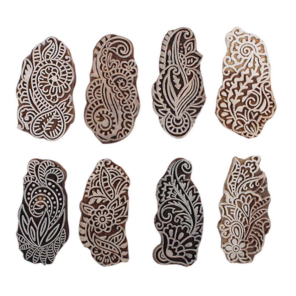 Set of 8 Piece New Mix Wooden Printing Block. Ideal for Using on Fabric, Paper, Canvas, etc. These Blocks can be use to Print with Oil Colors, Fabric Colors, Water Colors, Acrylic Colors and Vegetable Colors.