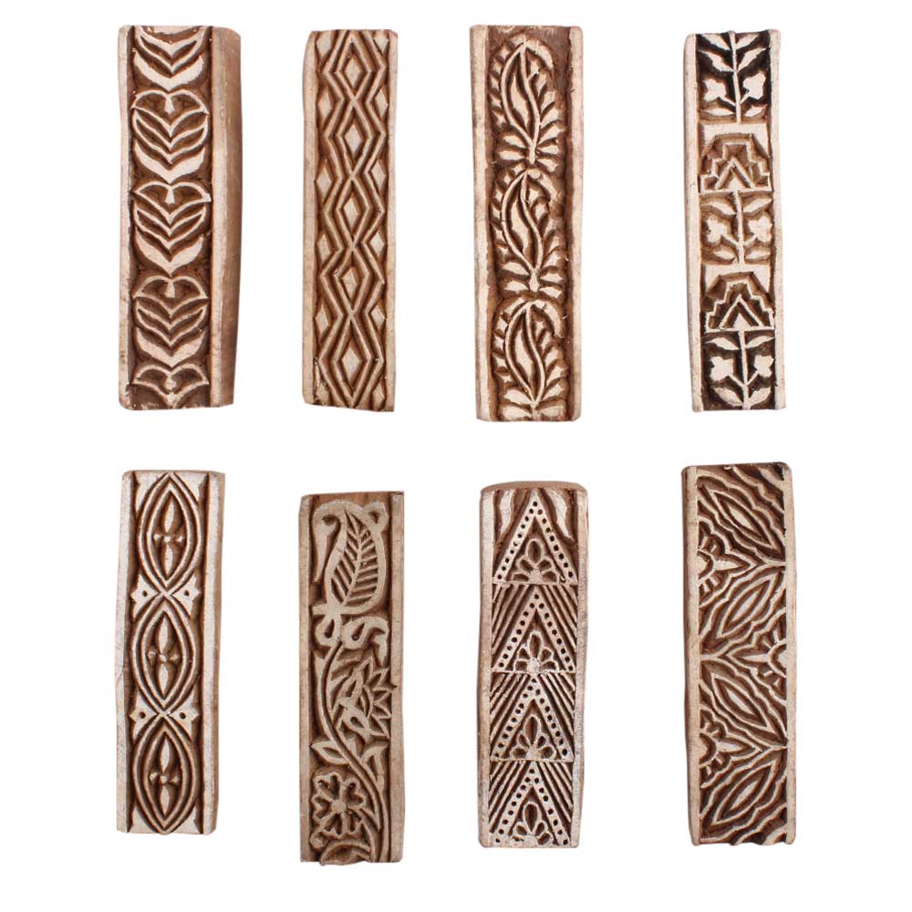 Set of 8 Piece New Mix Wooden Printing Block. Ideal for Using on Fabric, Paper, Canvas, etc. These Blocks can be use to Print with Oil Colors, Fabric Colors, Water Colors, Acrylic Colors and Vegetable Colors.