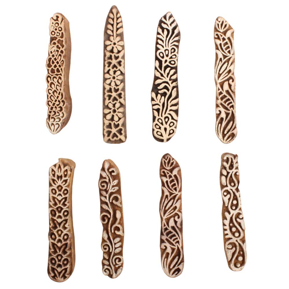 Set of 8 Piece New Mix Wooden Printing Block. Ideal for use on Fabric, Paper, Canvas, etc. These Blocks can be use to Print with Oil Colors, Fabric Colors, Water Colors, Acrylic Colors and Vegetable Colors.