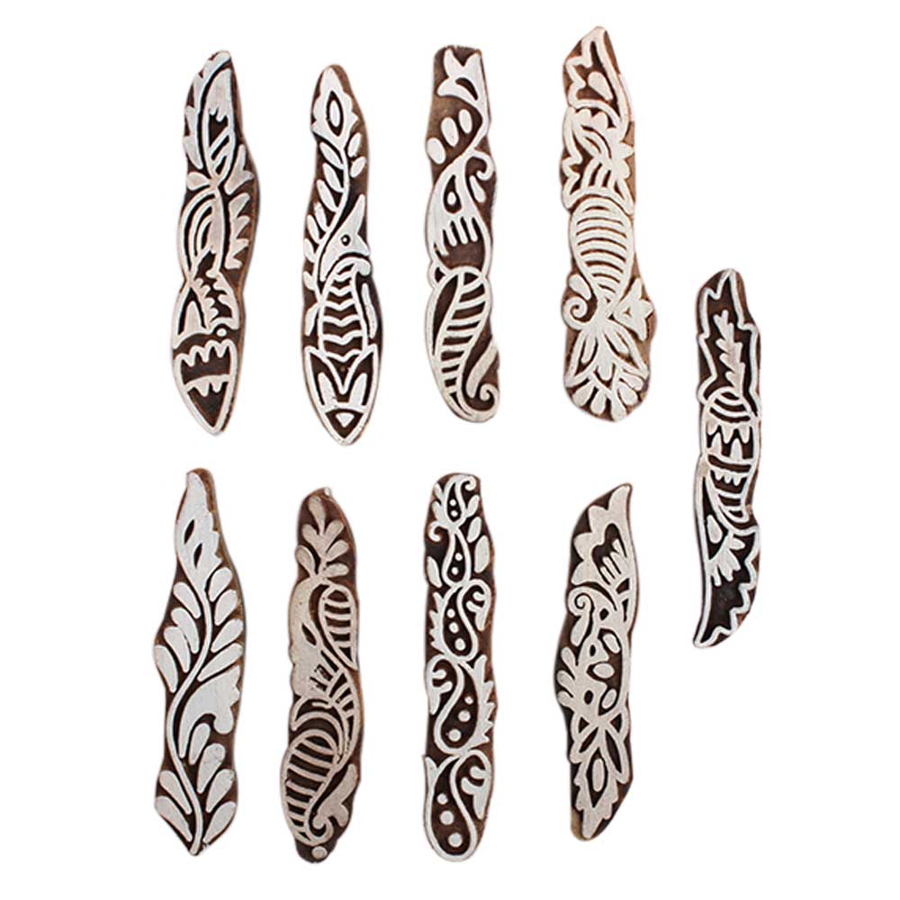 Set of 9 Piece New Mix Wooden Printing Block. Ideal for Using on Fabric, Paper, Canvas, etc. These Blocks can be use to Print with Oil Colors, Fabric Colors, Water Colors, Acrylic Colors and Vegetable Colors.