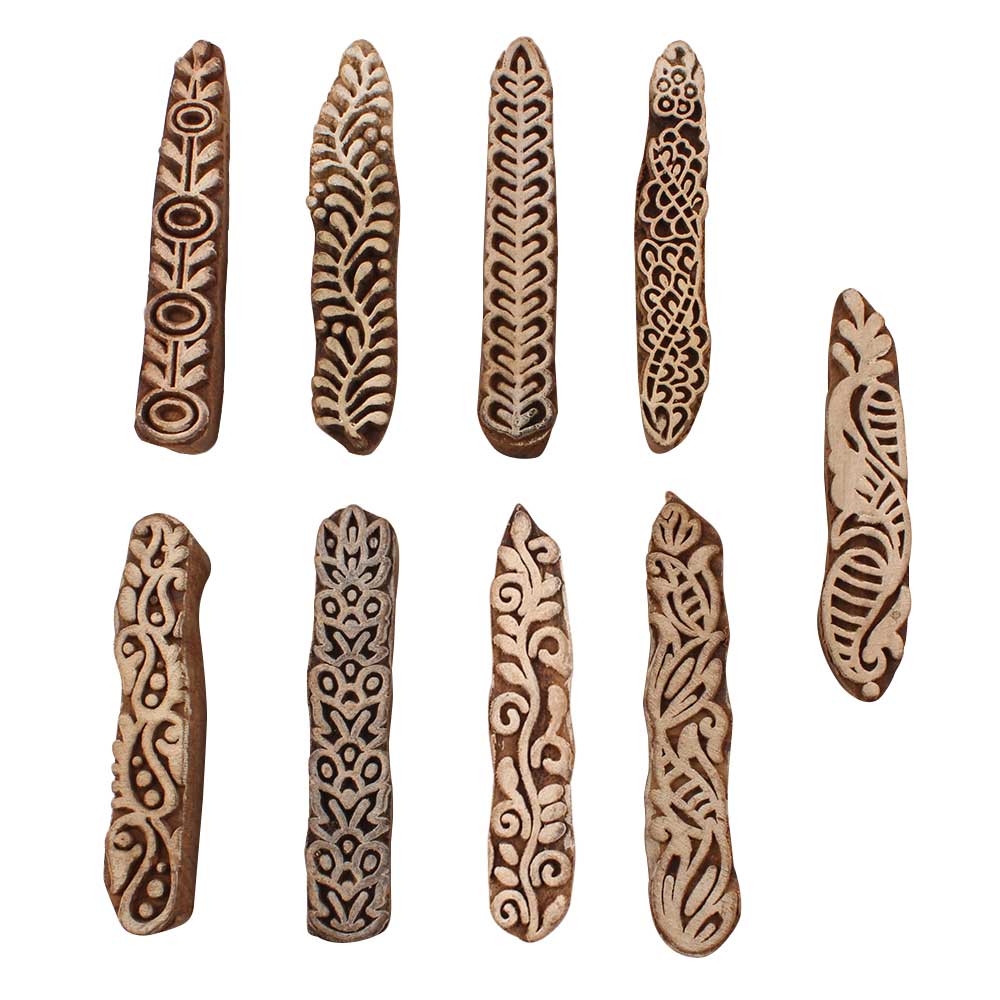 Set of 9 Piece New Mix Wooden Printing Blocks. Ideal for use on Fabric, Paper, Canvas, etc. These Blocks can be use to Print with Oil Colors, Fabric Colors, Water Colors, Acrylic Colors and Vegetable Colors.