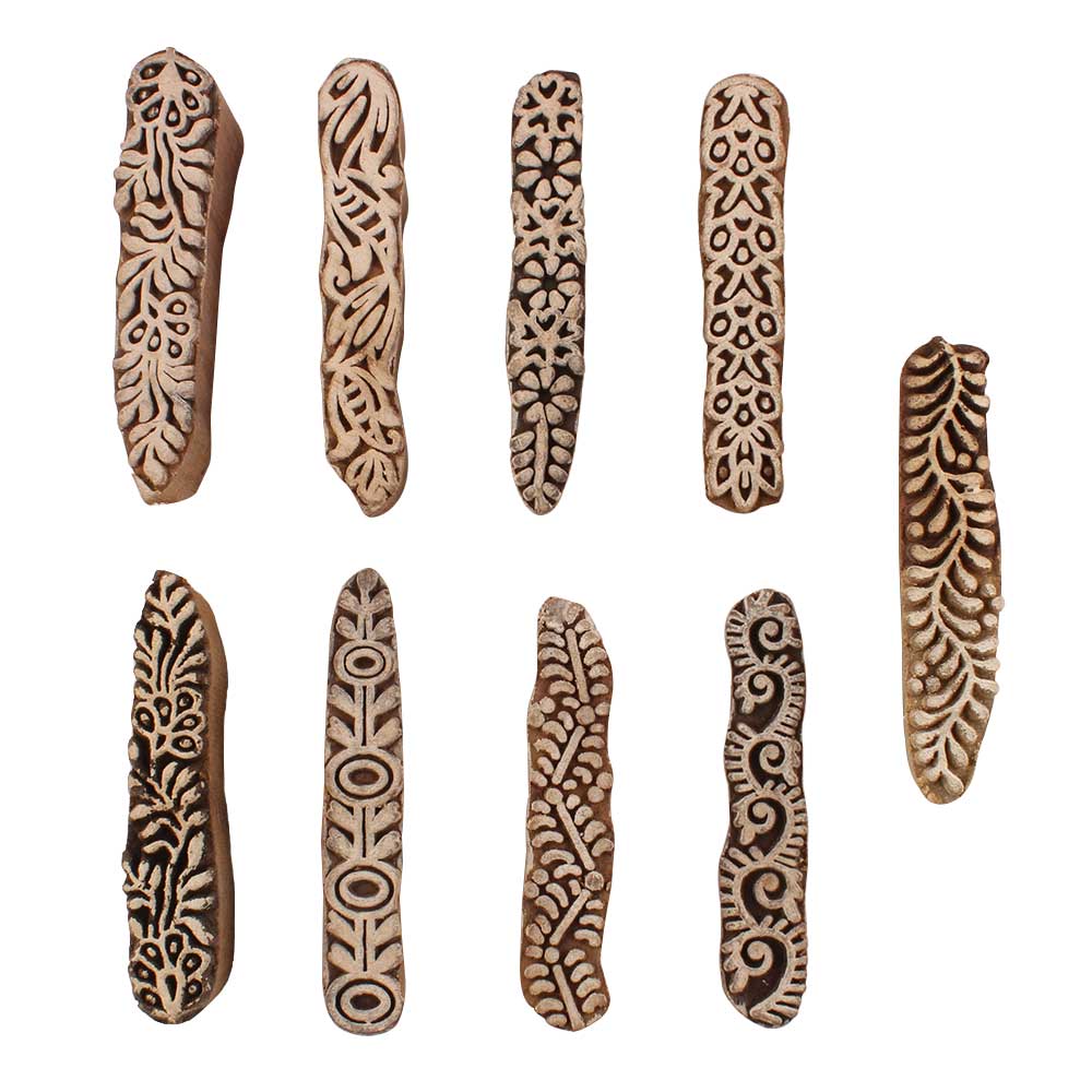 Set of 9 Piece New Mix Wooden Printing Blocks. Ideal for use on Fabric, Paper, Canvas, etc. These Blocks can be use to Print with Oil Colors, Fabric Colors, Water Colors, Acrylic Colors and Vegetable Colors.