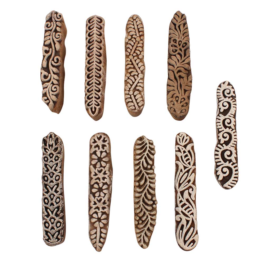 Set of 9 Piece New Mix Wooden Printing Blocks. Ideal for use on Fabric, Paper, Canvas, etc. These Blocks can be use to Print with Oil Colors, Fabric Colors, Water Colors, Acrylic Colors and Vegetable Colors.