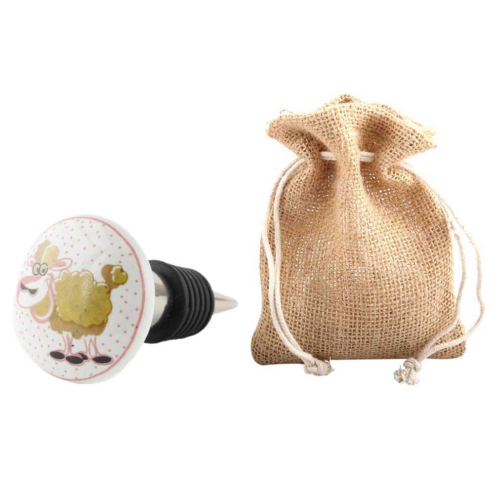 Sheep Ceramic Wine Bottle Stopper. Zinc Alloy Wine Bottle Stopper with Attractive Jute Bag Packaging.