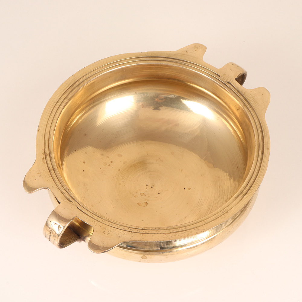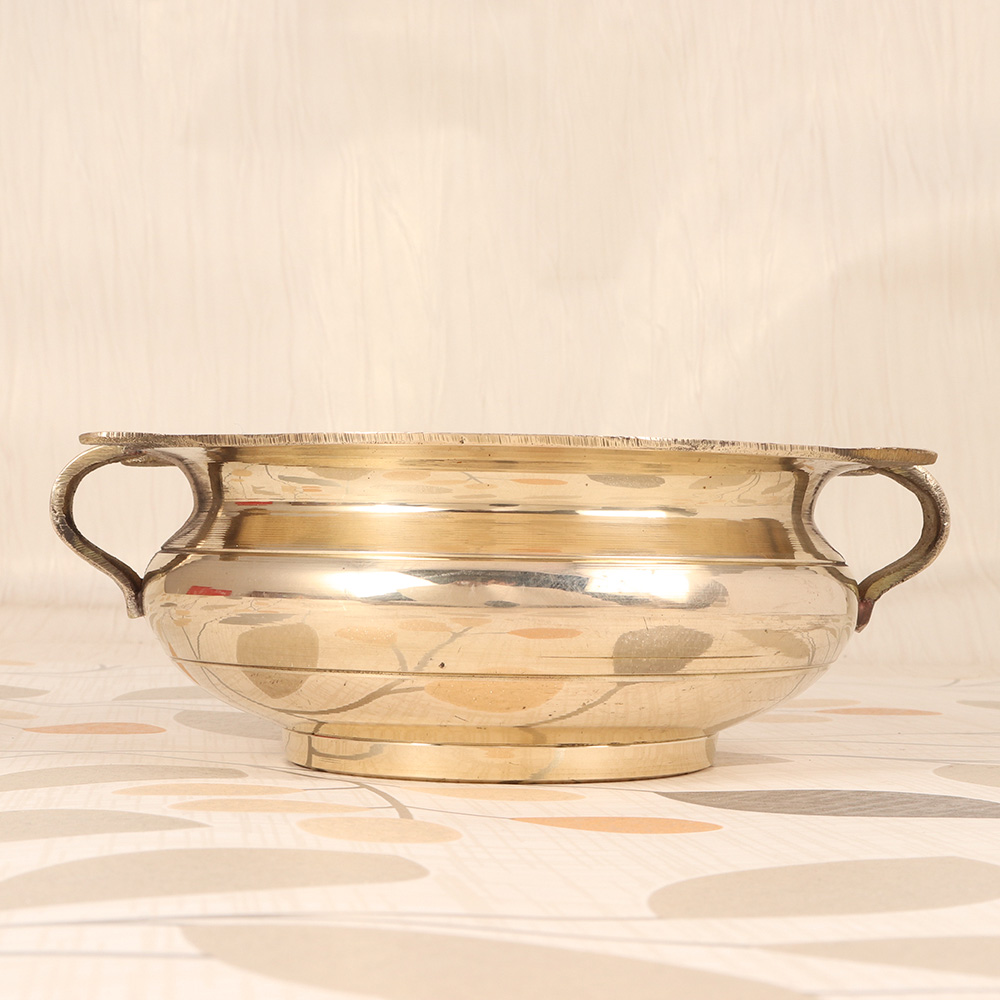 Immerse yourself in the captivating world of South Indian art with our exquisite brass urli. This stunning piece, crafted with meticulous attention to detail, radiates a warm, golden glow that instantly elevates any space, transforming it into a serene sanctuary of refined elegance. Elevate your living experience by introducing this brass urli into your space. Its captivating presence will inspire a sense of tranquility and cultural appreciation, making it the perfect addition to your home or office. Whether you use it as a decorative centerpiece, a storage vessel, or in your daily rituals, this brass urli will infuse your surroundings with the rich heritage of South Indian art. Designed to seamlessly blend with any decor, this brass urli is a must-have for those who appreciate the beauty of handcrafted, timeless pieces. Immerse yourself in the allure of South Indian artistry and let this stunning urli become the focal point that elevates your living experience.
