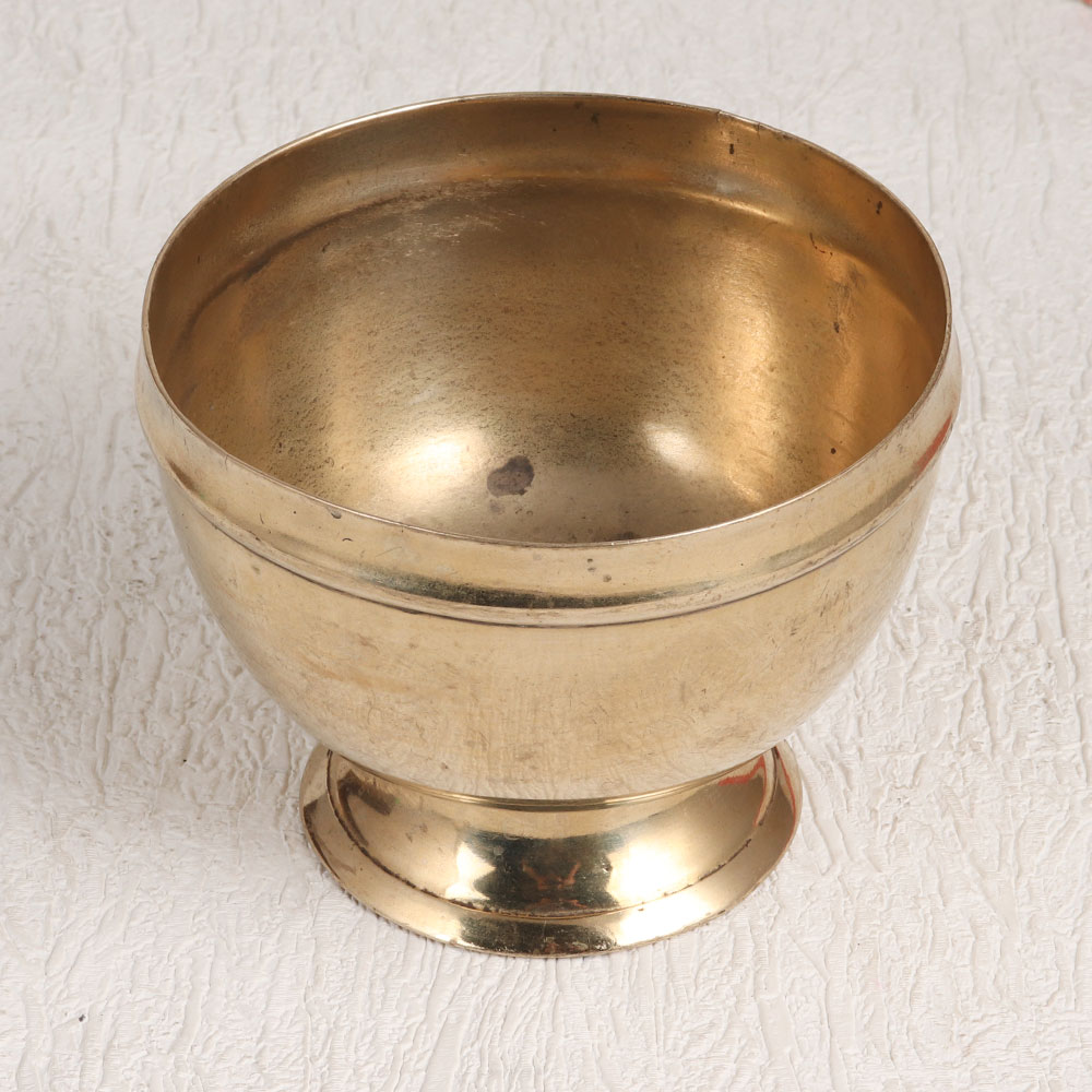 Adorn your decor with the timeless elegance of this exquisite Vintage Brass Kumkum Bowl. Handcrafted by talented Indian artisans in the revered South Indian Art tradition, this piece showcases the finest craftsmanship and attention to detail. Its shiny golden finish adds a touch of opulence to any setting, making it a versatile addition to your decor. Crafted from high-quality brass, this bowl serves both functional and decorative purposes. You can use it to store kumkum tilak during prayer rituals, adding a sense of sacredness to your spiritual moments. Its versatile design makes it suitable for various settings, from your home and office to restaurants, hotels, cafes, or shops, where it can serve as an exquisite decorative piece. This brass kumkum bowl is a testament to the rich cultural heritage of India and makes a splendid addition to your vintage collection. It can also be proudly displayed at exhibitions or gifted to your family, friends or relatives on special, festive, or auspicious occasions, symbolizing tradition, craftsmanship, and the timeless beauty of Indian artistry.