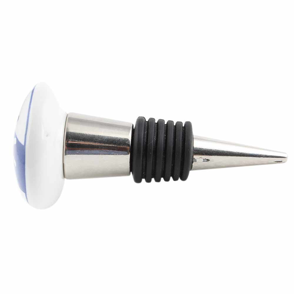 Ship Wheel Slate Blue Flat Ceramic Wine Bottle Stopper. Zinc Alloy Wine Bottle Stopper with Attractive Jute Bag Packaging.