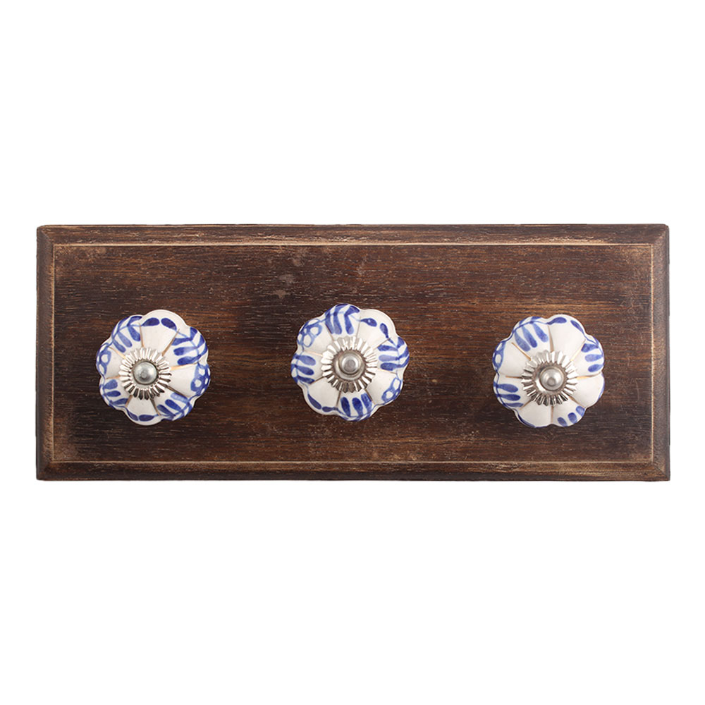 Silhouetted Blue Ceramic Wooden Hook. A Perfect Complement to the Soft Tone of the Wood are these White Traditional Hat &Amp; Coat Hook Made of Genuine Porcelain and Brass. It can be use to Hang Jewellery, Leashes, Towels, Scarves, Light Weight Sweaters, Caps Etc.