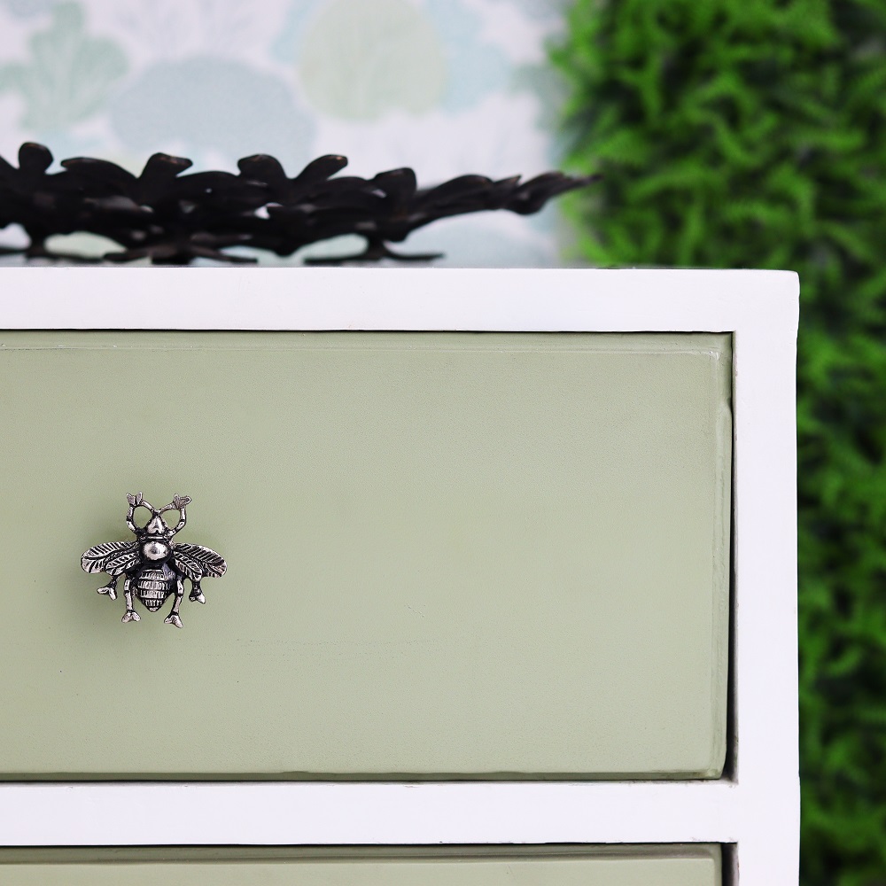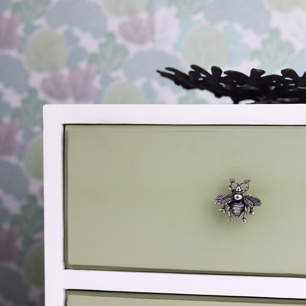 The intricately designed bee is made from sturdy aluminium and boasts a sleek silver finish. Its elegant yet playful appearance makes it a standout addition, perfect for both modern and rustic settings. Whether placed in a kitchen, bedroom, or living area, this knob infuses character and charm into your furniture.