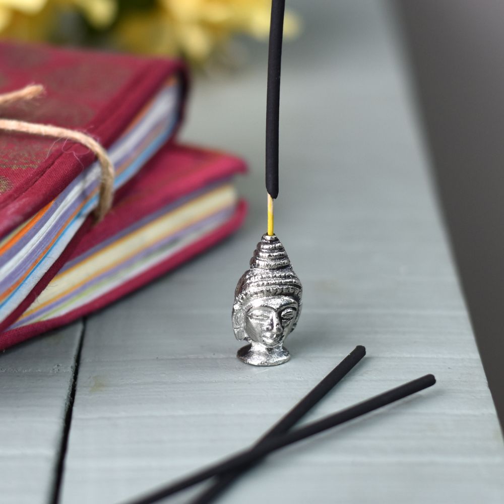 This Buddha head statue is a display piece and incense stick holder, this Buddha head statue. Buddha means "enlightened" in Sanskrit. Morality, meditation, and wisdom are the means to enlightenment. Buddhists frequently practice meditation because they think it promotes truth. It will give your living room, bedroom, office, study, meditation room, yoga room, hotel, library, etc. an amazing appearance. it comes in silver finish.