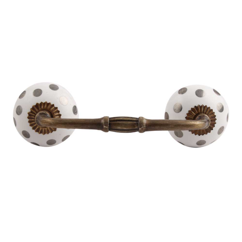 Silver Dot Ceramic Bridge Handle. Ideal for Drawer, Dresser, Cabinet, Wardrobe, Cupboard and Almirah.