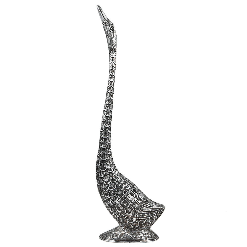Silver Color Duck Sculpture with Slender Neck.