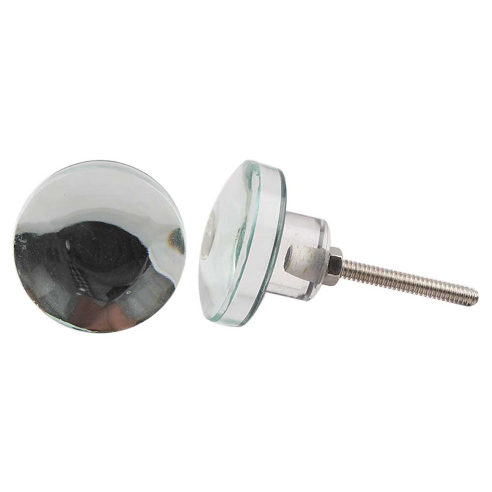 Silver Flat Glass Knobs. Ideal for Drawer, Dresser, Cabinet, Wardrobe, Cupboard and Almirah.