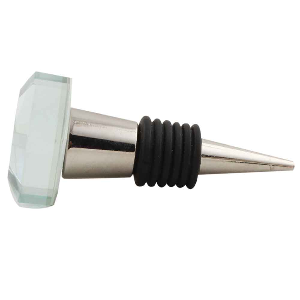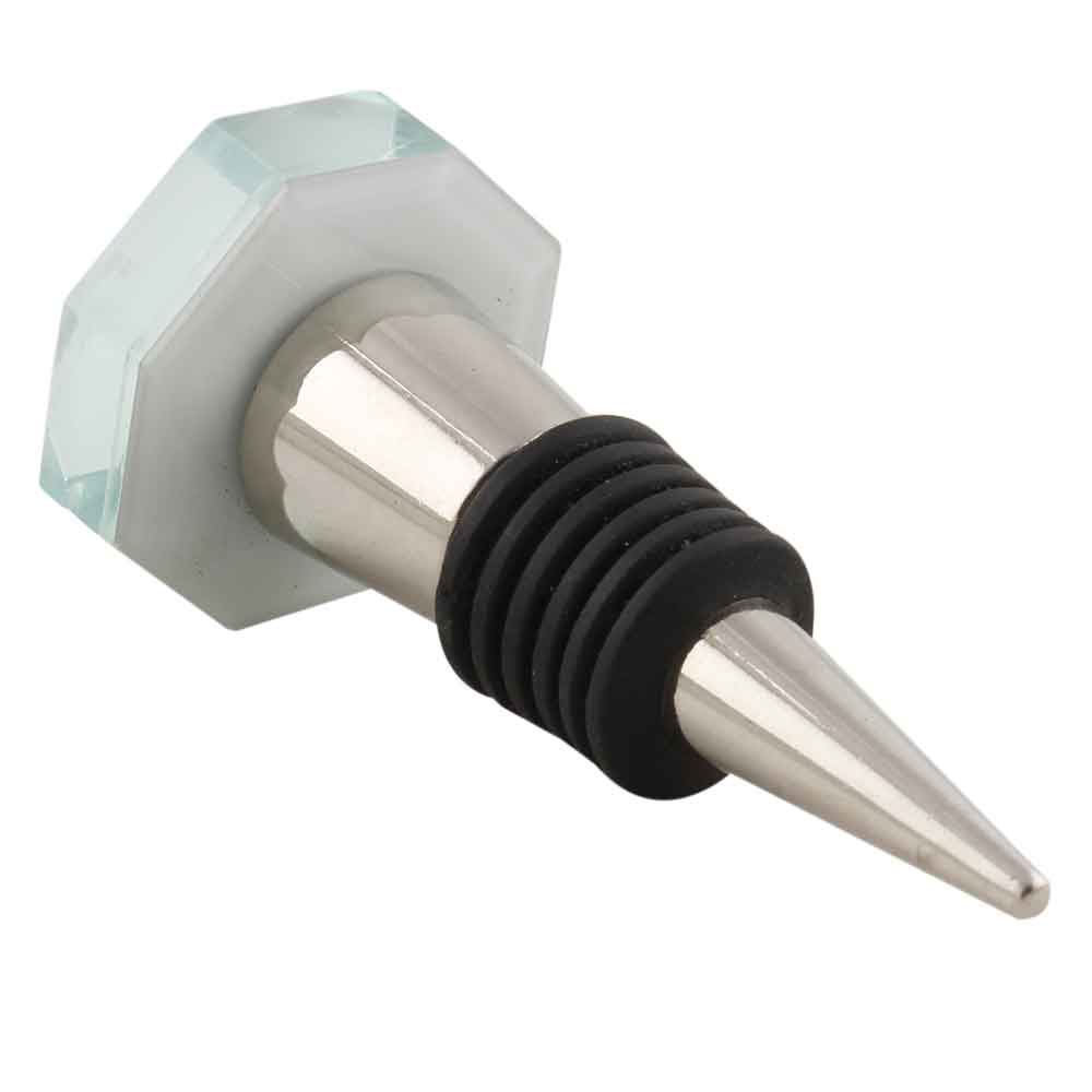 Silver Flat Octagon Dresser Glass Wine Stopper Online (2). Zinc Alloy Wine Bottle Stopper with Attractive Jute Bag Packaging.