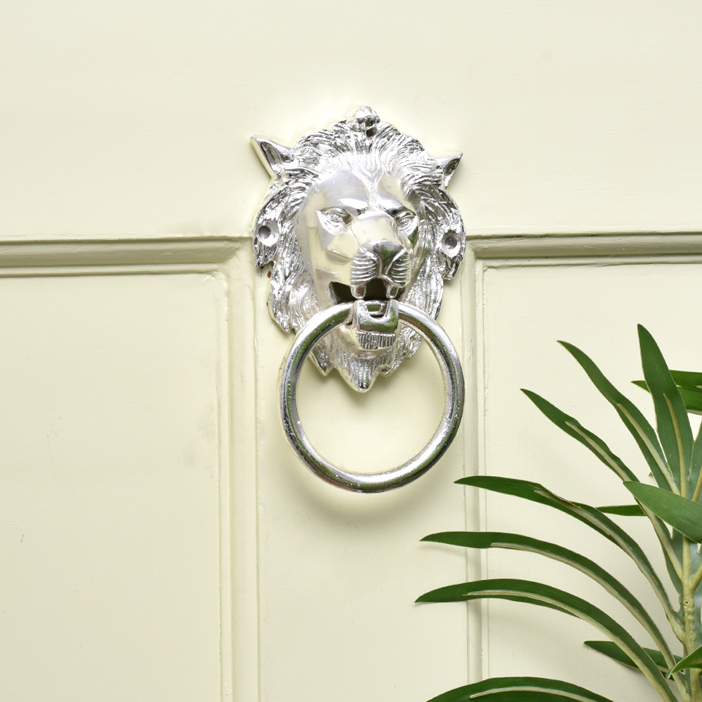 Silver Lion Door Knocker-2. Ideal for your main doors, windows, furniture, cabinets, almirahs, etc.