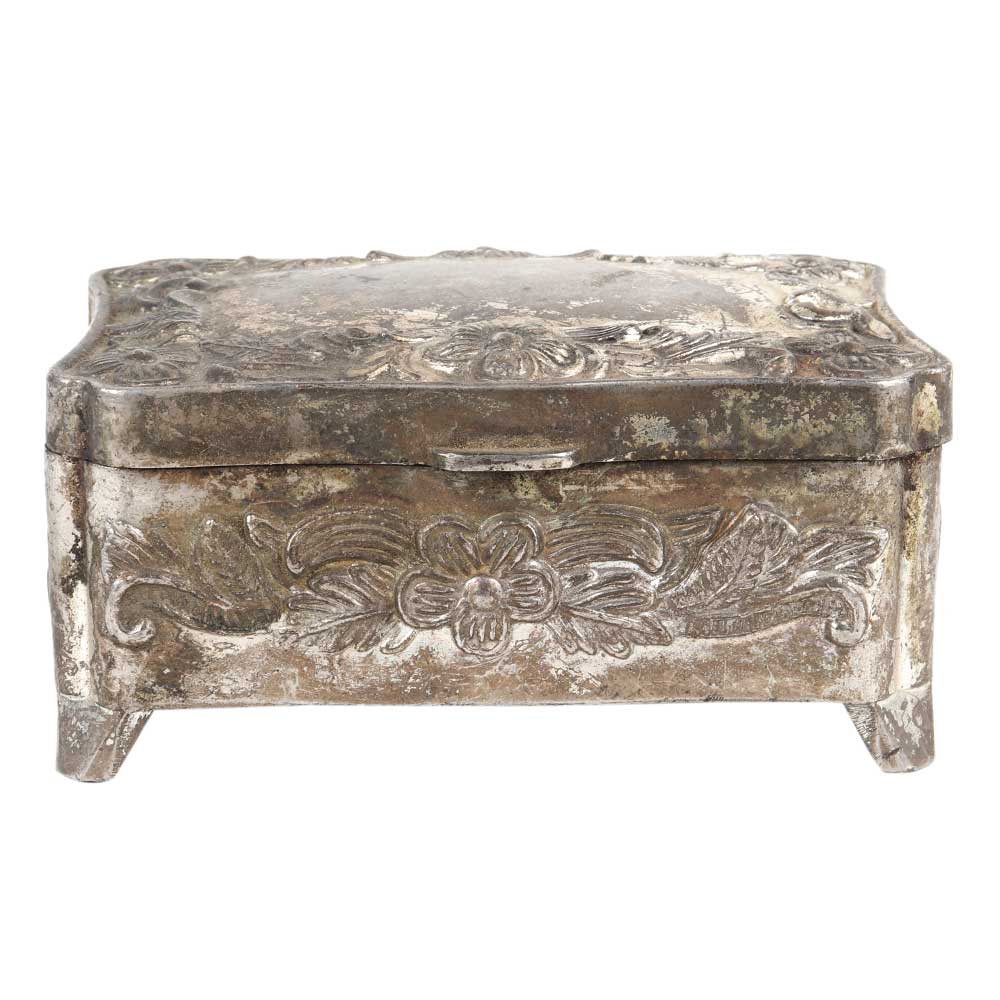 Silver Metal storage box with engraved floral design that can be used as a jewelry box, your can keep your important documents in it, accessories, tissue box etc. Diwali gift, anniversary gift, birthday gift, souvenir or showpiece.