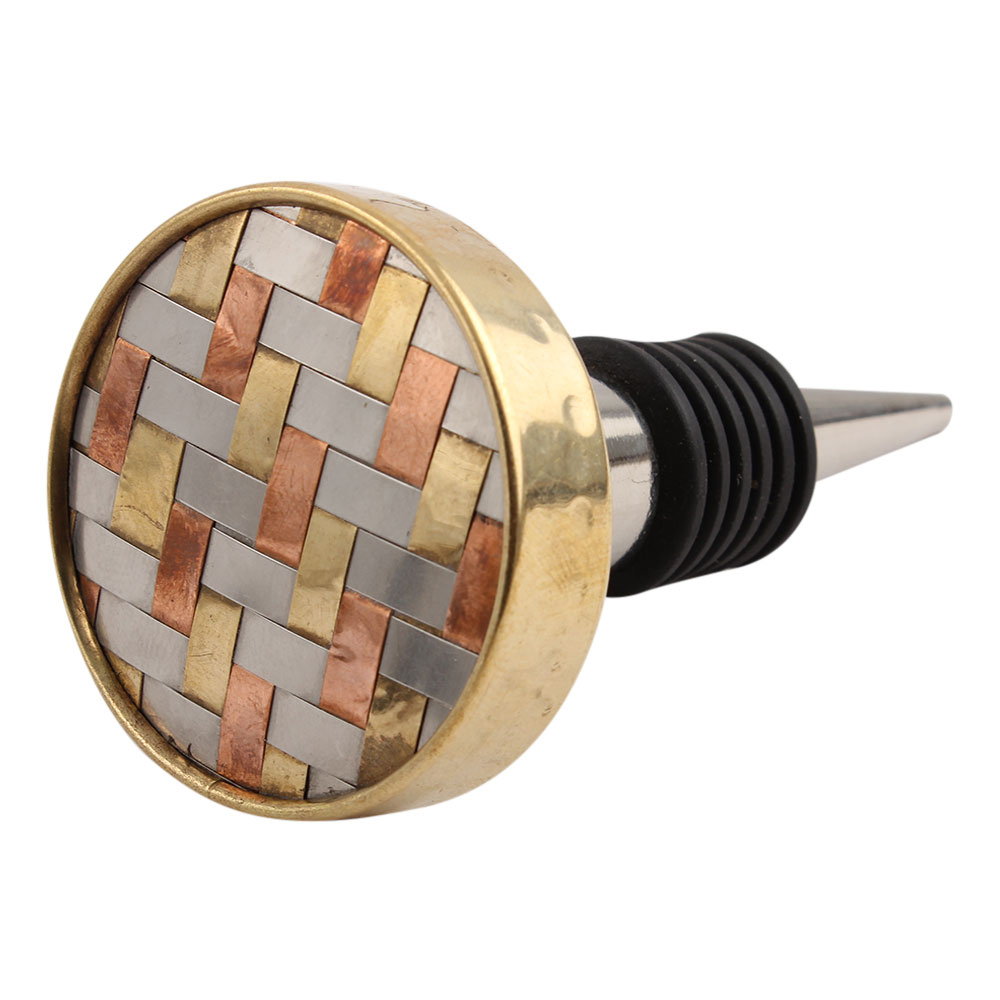Silver Round Metal And Wooden Wine Stopper.zinc alloy wine bottle stopper with attractive Jute Bag Packaging.