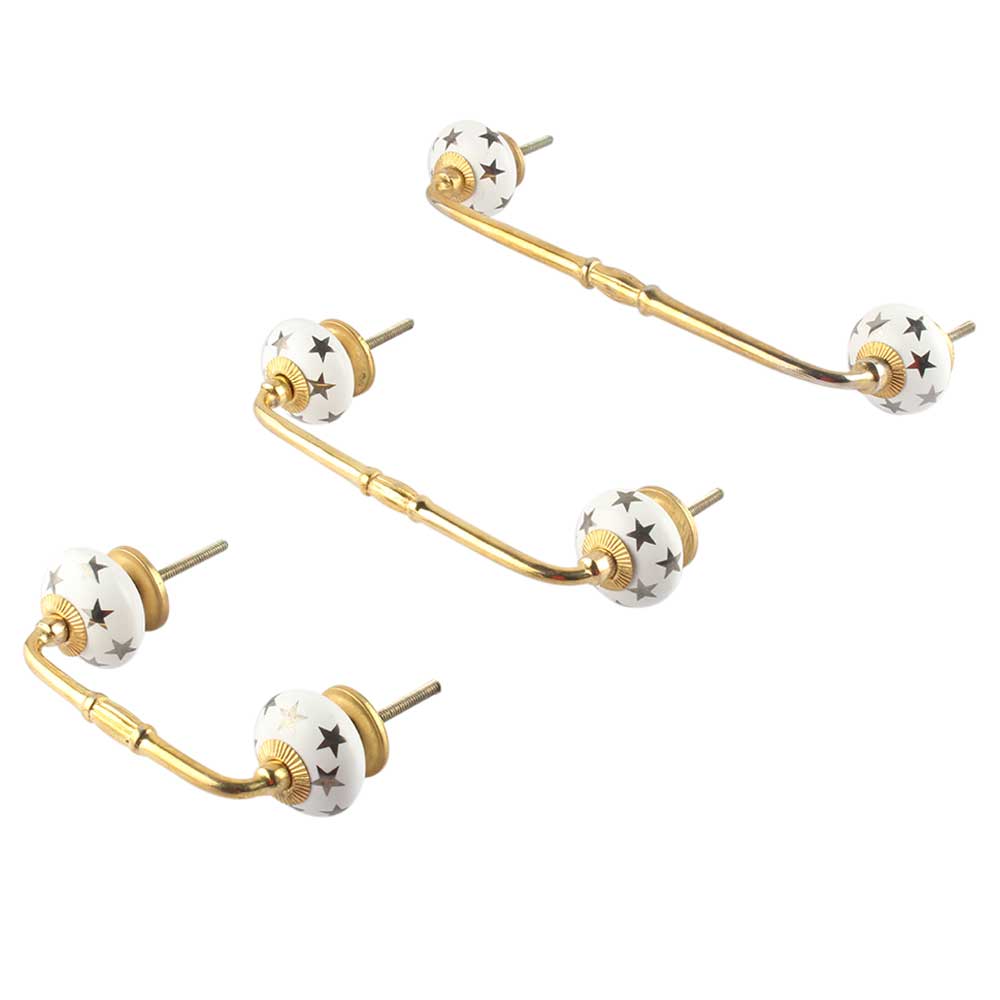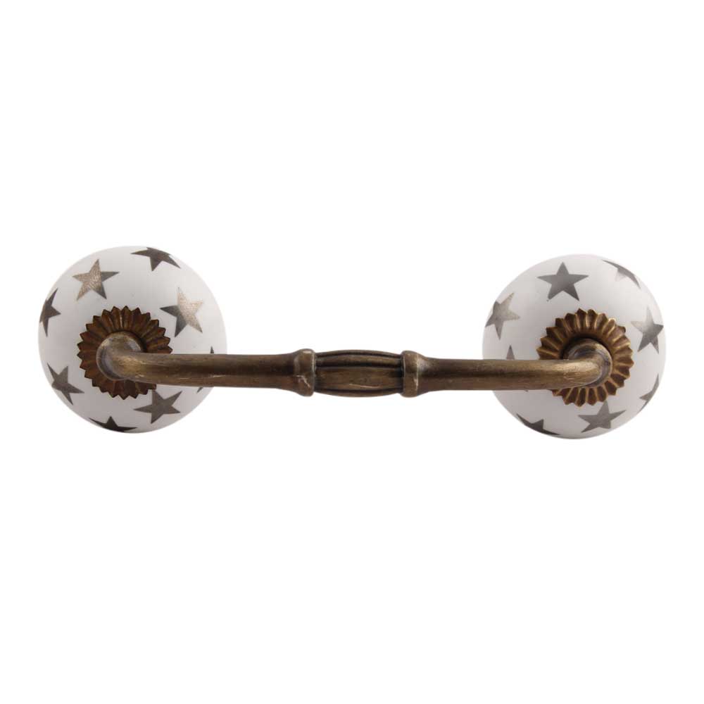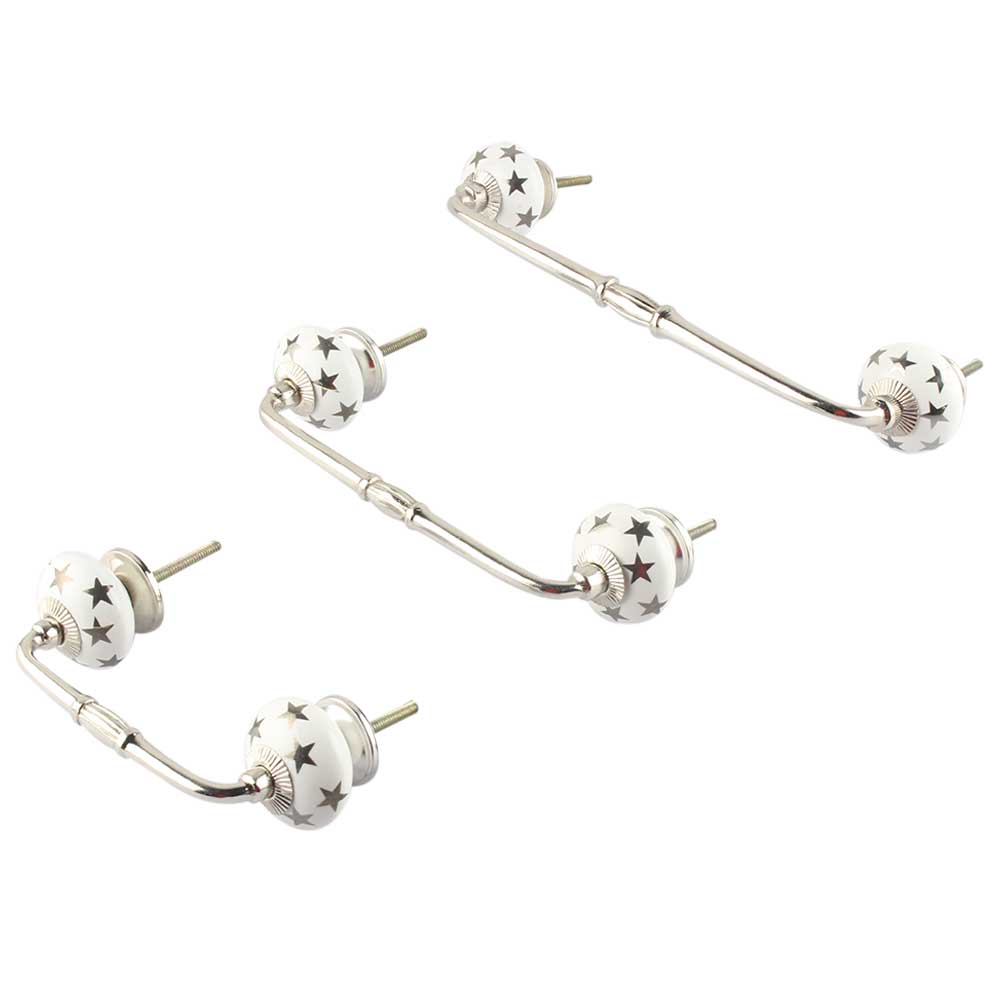 Silver Star Ceramic Bridge Handle. Ideal for Drawer, Dresser, Cabinet, Wardrobe, Cupboard and Almirah.