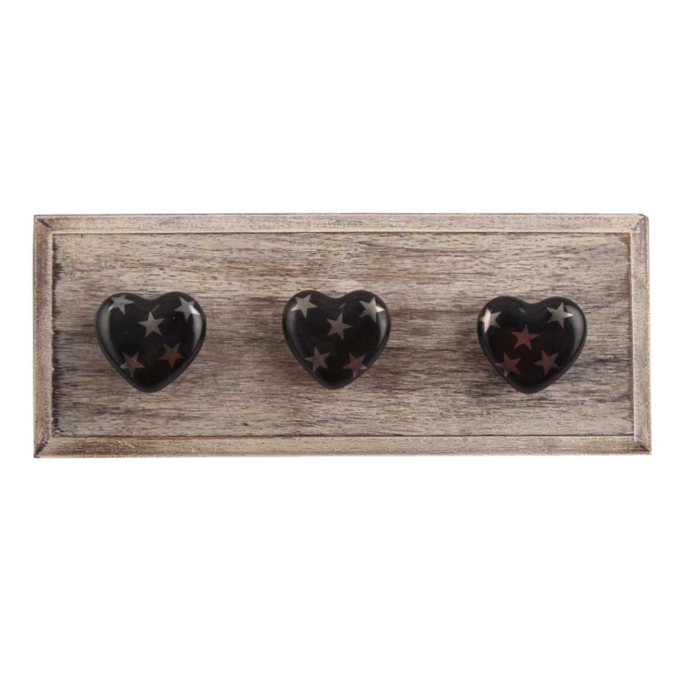 Silver Star Heart Ceramic Wooden Hook. A Perfect Complement to the Soft Tone of the Wood are these White Traditional Hat & Coat Hook Made of Genuine Porcelain and Brass. It can be use to Hang Jewellery, Leashes, Towels, Scarves, Light Weight Sweaters, Caps Etc.