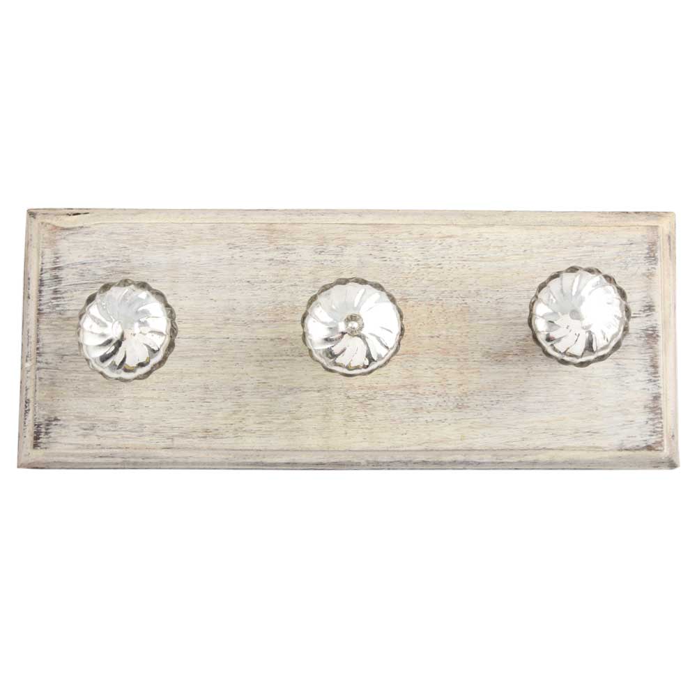 Silver Stripe Murcary Glass Wooden Hook. A Perfect Complement to the Soft Tone of the Wood are these White Traditional Hat and Coat Hook Made of Genuine Porcelain and Brass. It can be used to Hang Jewelry, Leashes, Towels, Scarves, Light Weight Sweaters, Caps etc.