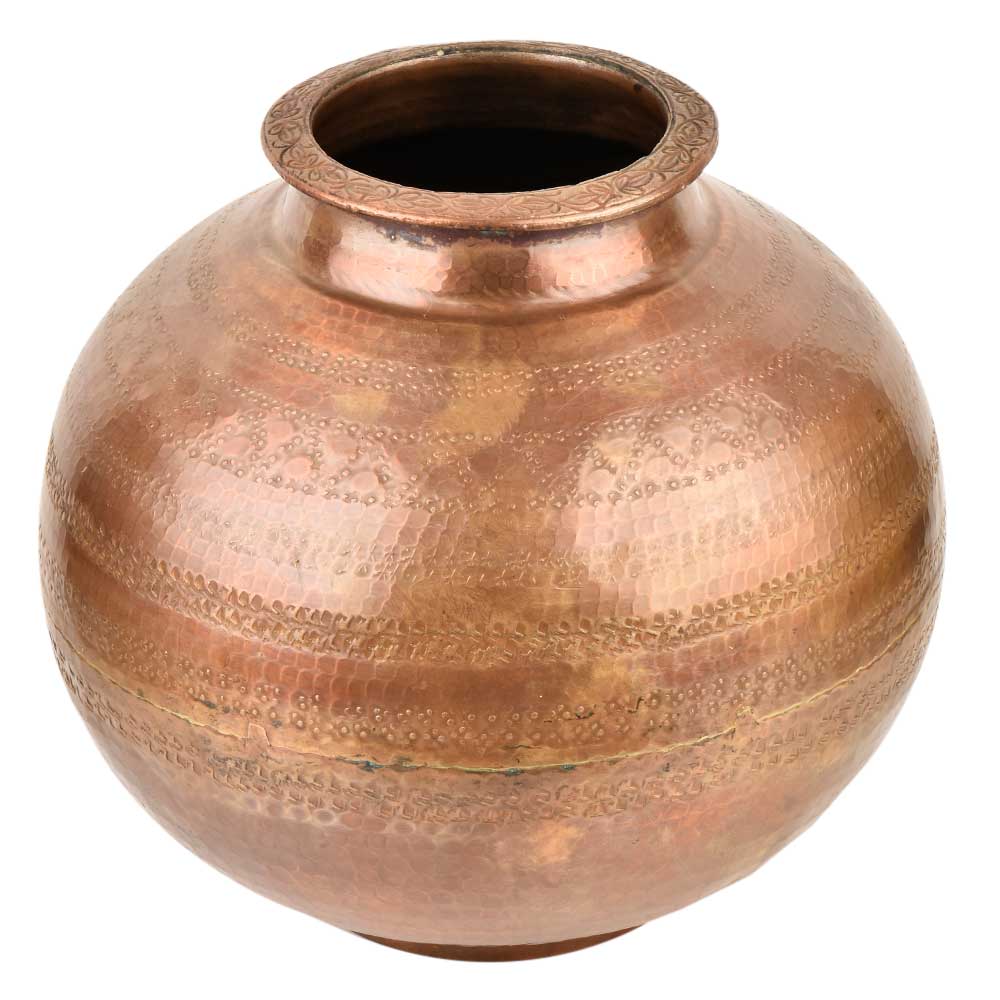 Simple Engraved Brass Bulbous Copper Finish Holy Water Pot