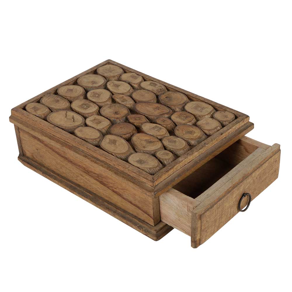 Organise your jewellery, trinkets, charms, cufflinks etc. in an efficient manner with this unique box. It can also be used to store keys, memos, small treasures, sewing, crafting and mending supplies in rustic style, looks amazing on a bedside cabinet, shelf or counter.
