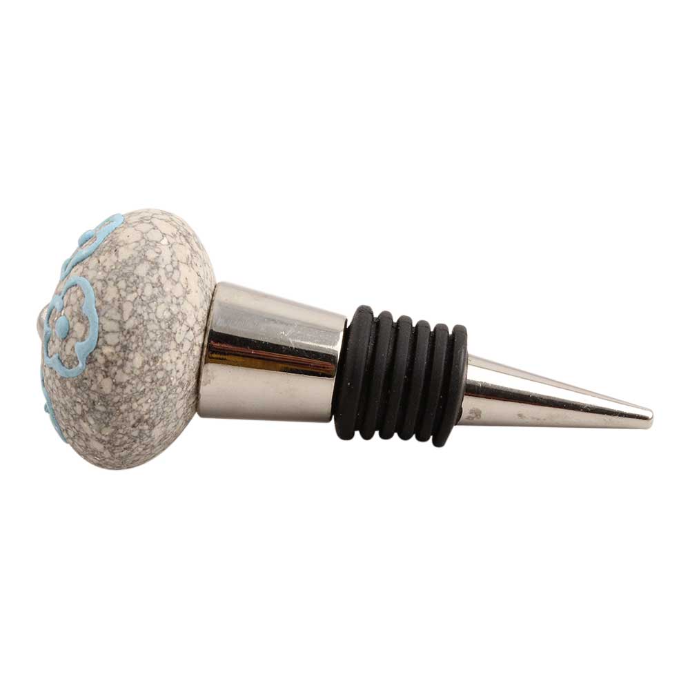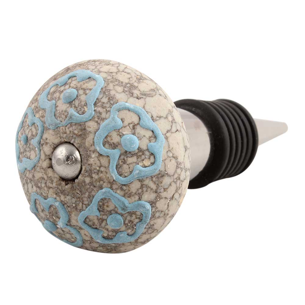 Sky Blue Floral Crackle Ceramic Wine Stoppper. Zinc Alloy Wine Bottle Stopper with Attractive Jute Bag Packaging.