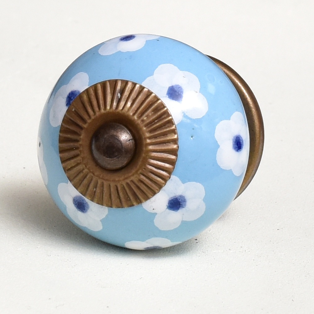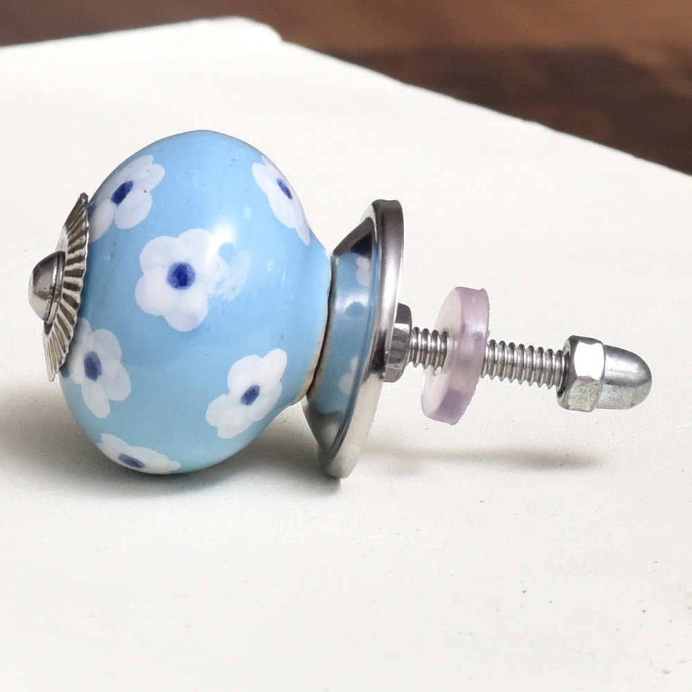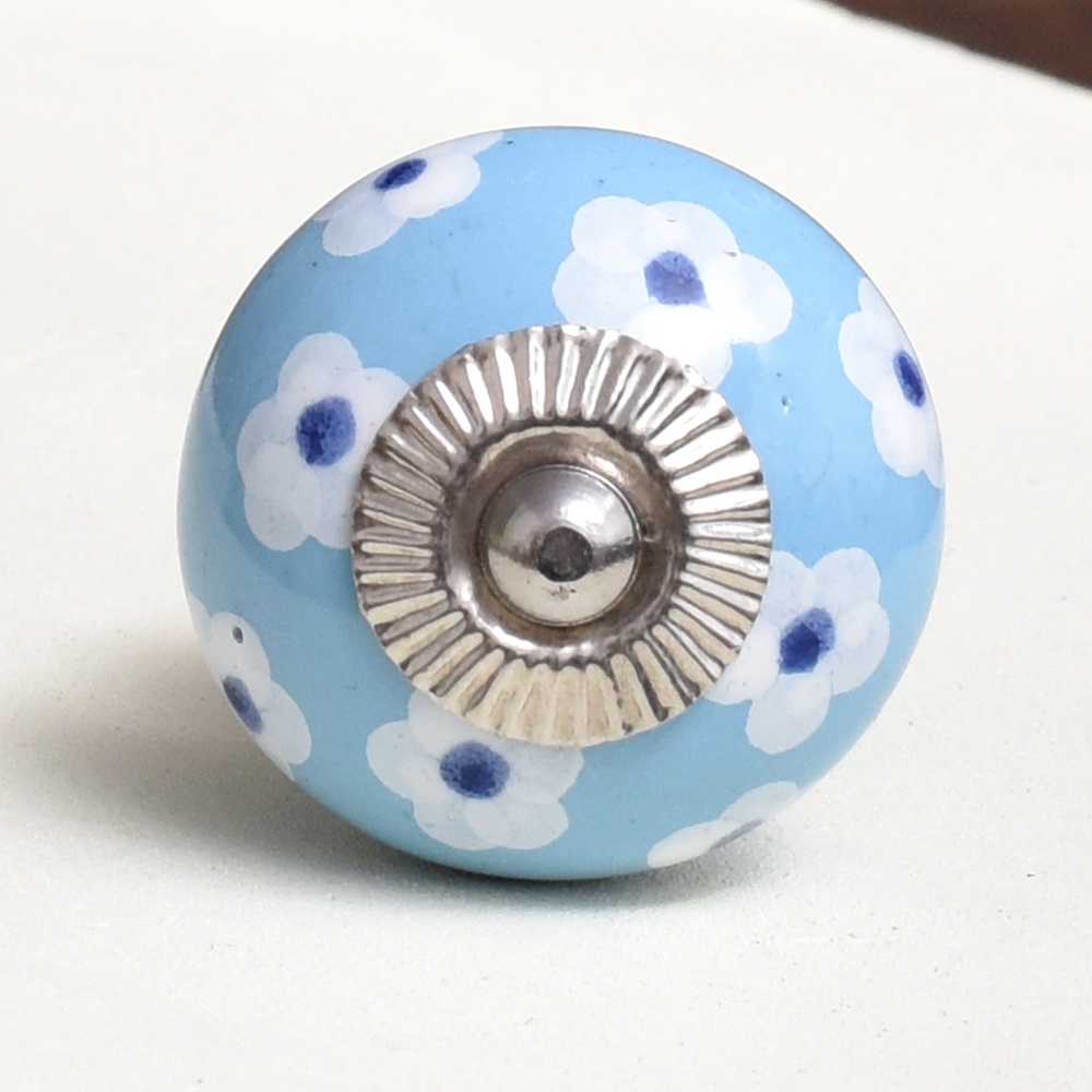 Sky Blue Flower Ceramic Round Knob. Ideal for kitchen cabinets, kitchen drawers, dining room, bed room, chest drawers, dressing tables, almirah