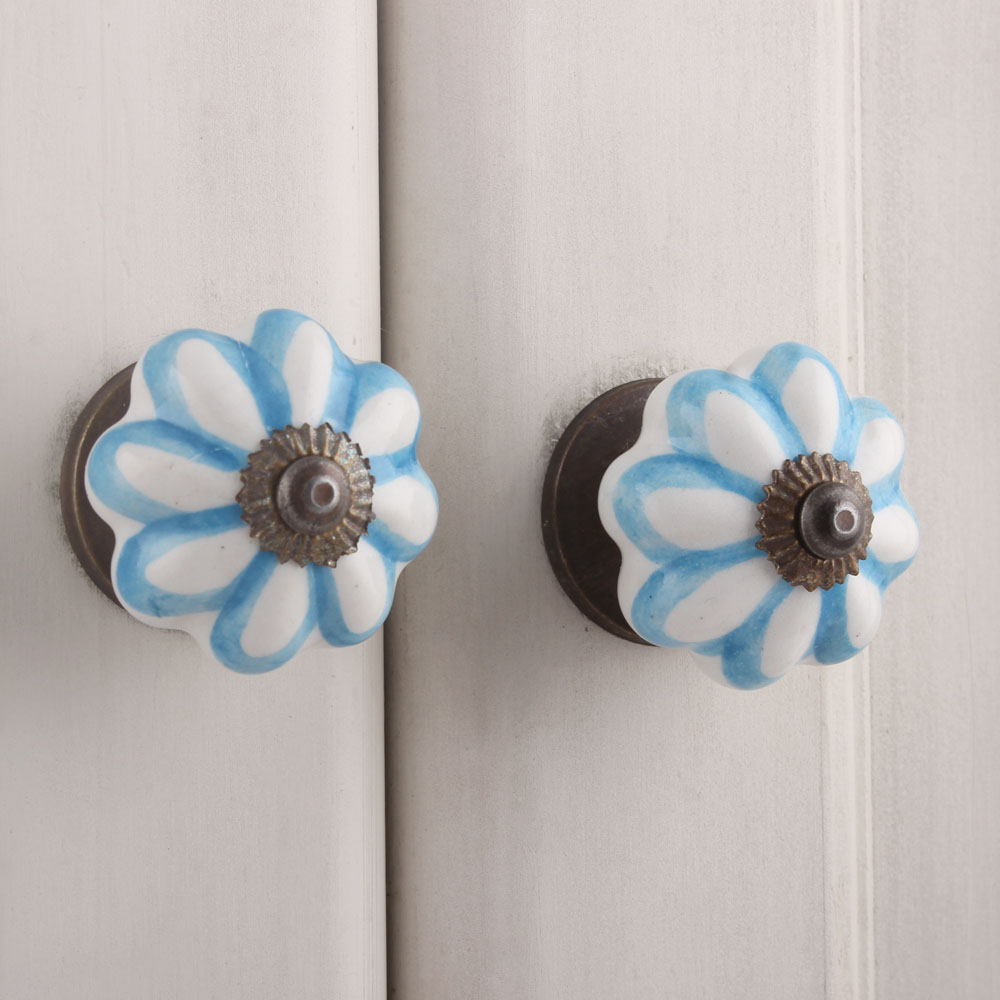 Sky Blue Sunflower Medium Melon Ceramic knob. Ideal for kitchen cabinets, kitchen drawers, dining room, bed room, chest drawers, dressing tables, almirah