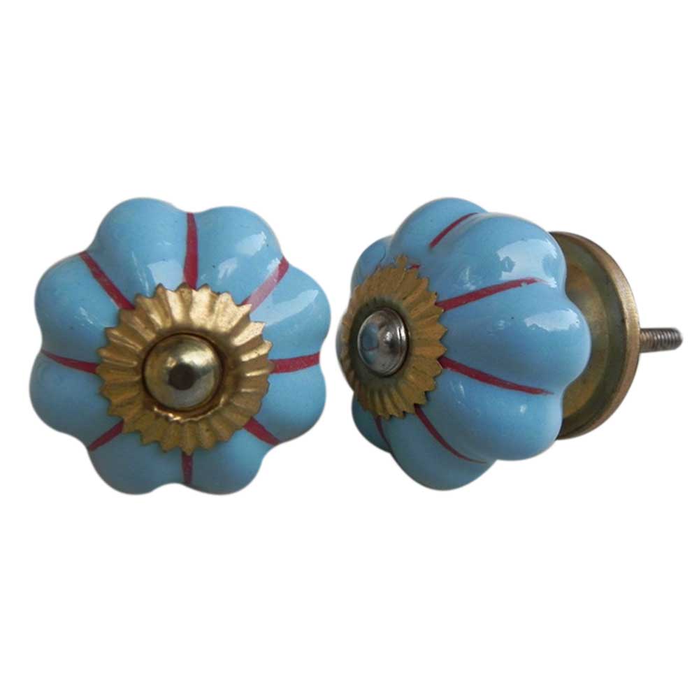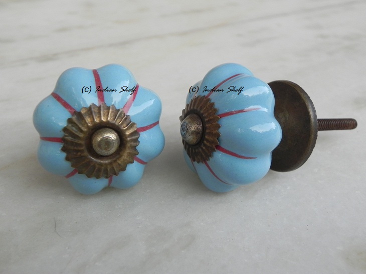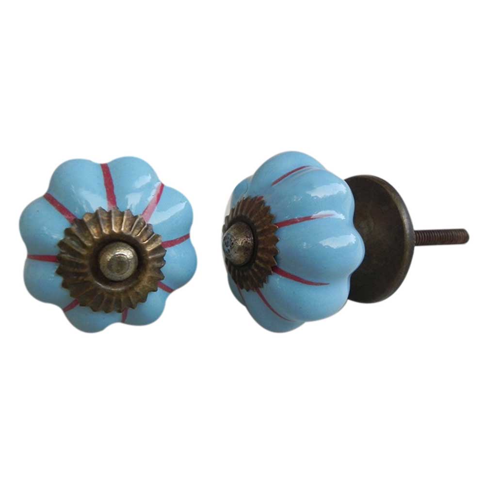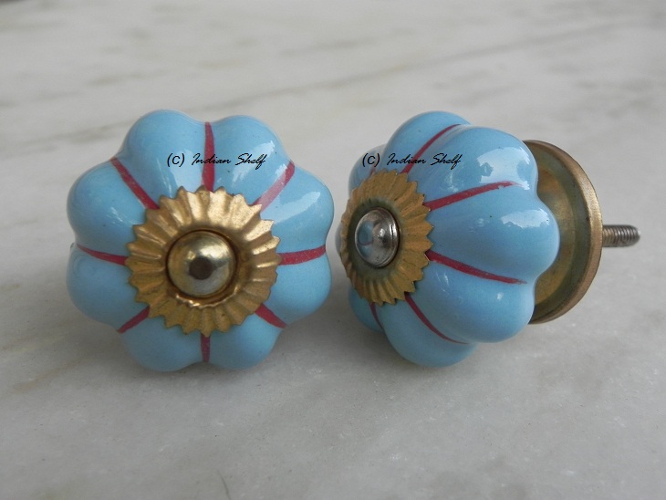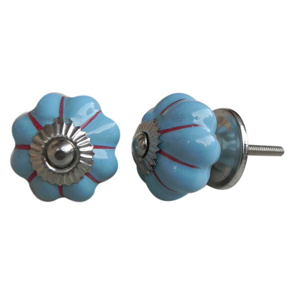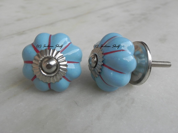 Sky Blue Red Striped melon shape knob. Ideal for kitchen cabinets, kitchen drawers, dining room, bed room, chest drawers, dressing tables, almirah