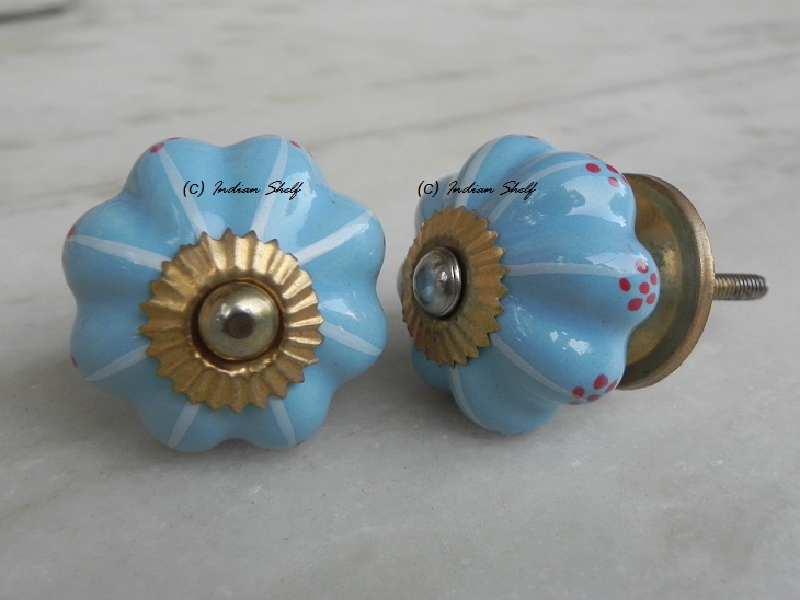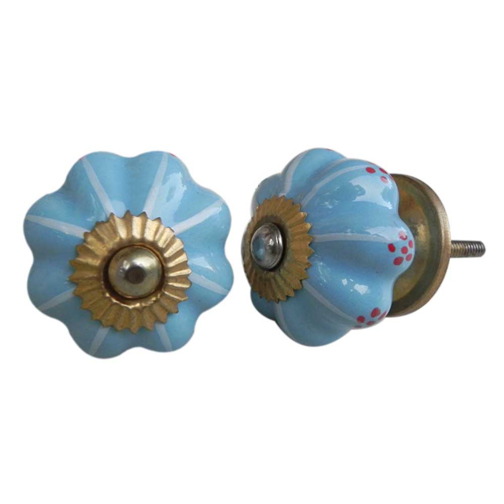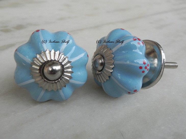 Sky Blue White Striped melon shape knob. Ideal for kitchen cabinets, kitchen drawers, dining room, bed room, chest drawers, dressing tables, almirah